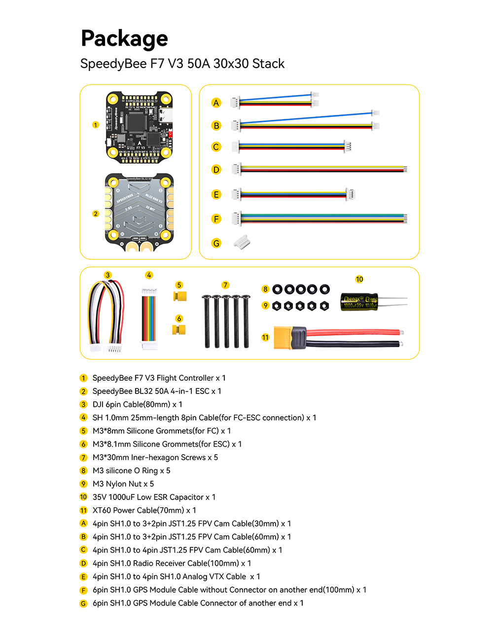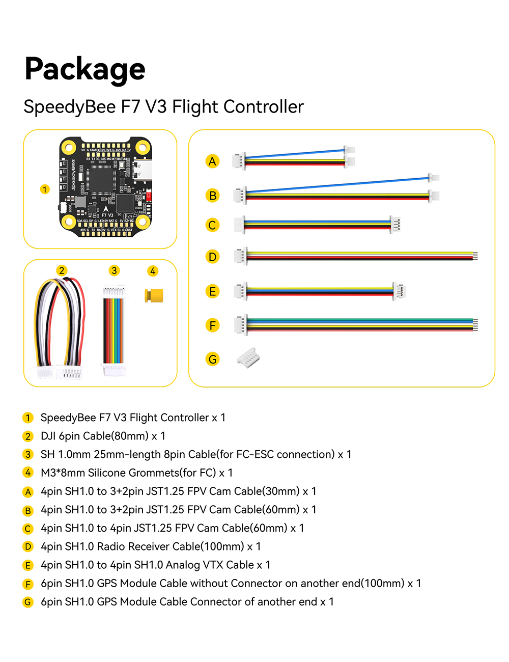 Package contents: SpeedyBee F7 V3 Flight Controller x 1