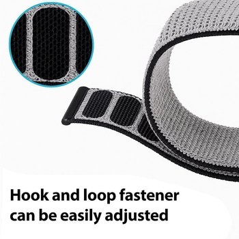 - Durable, washable gray/black nylon offers soft breathable alternative to silicone bands