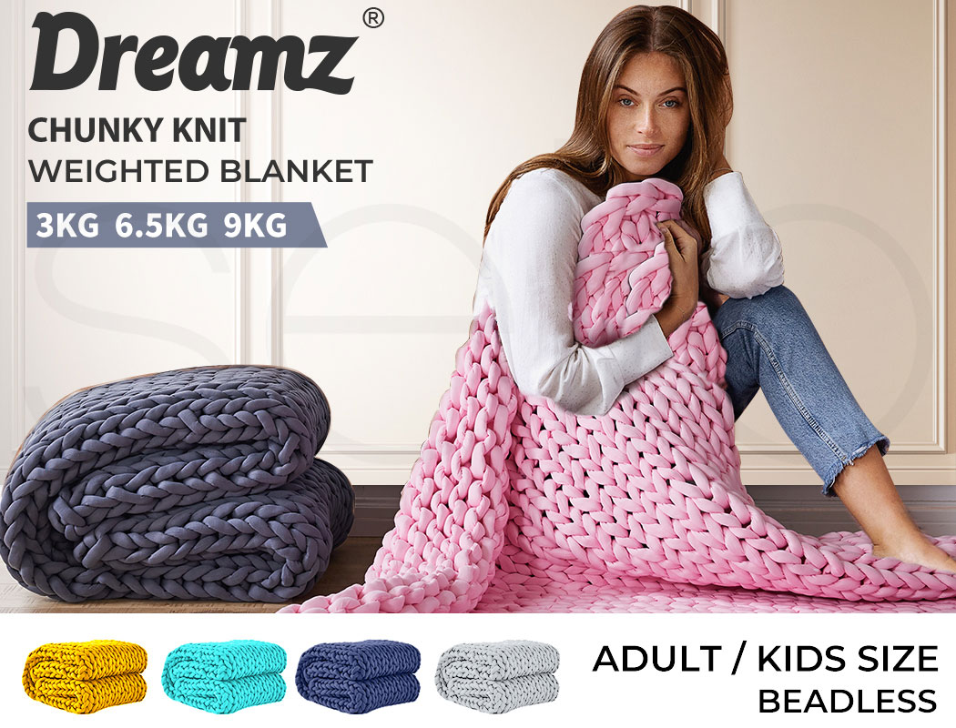 Dreamz Weighted Blanket 3kg 6.5kg 9kg Chunky Bulky Knit Throw Blanket Kids Adult