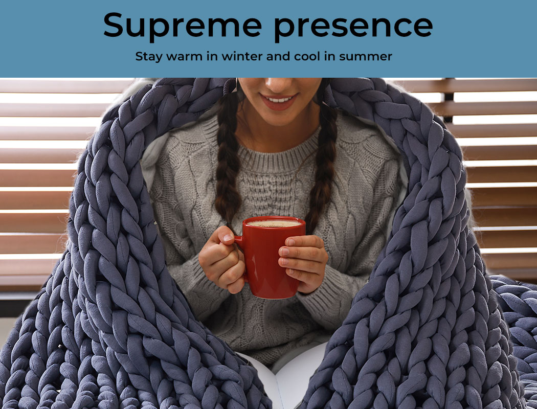 You get warmth in winter and breathability in summer with this large chunky knit weighted blanket design. You will be using this for many seasons to come. It is just that well-built.