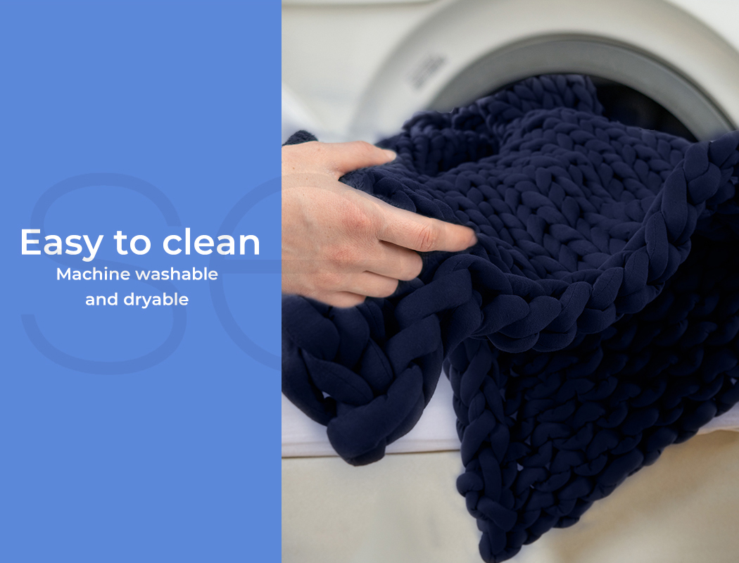 Clean your weighted sleep blanket in the washing machine along with anything else that will fit. You can ever put it in the dryer so you will never miss a night’s sleep with it.