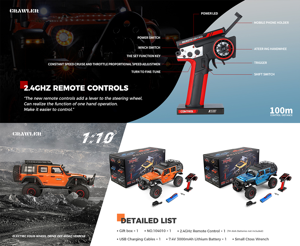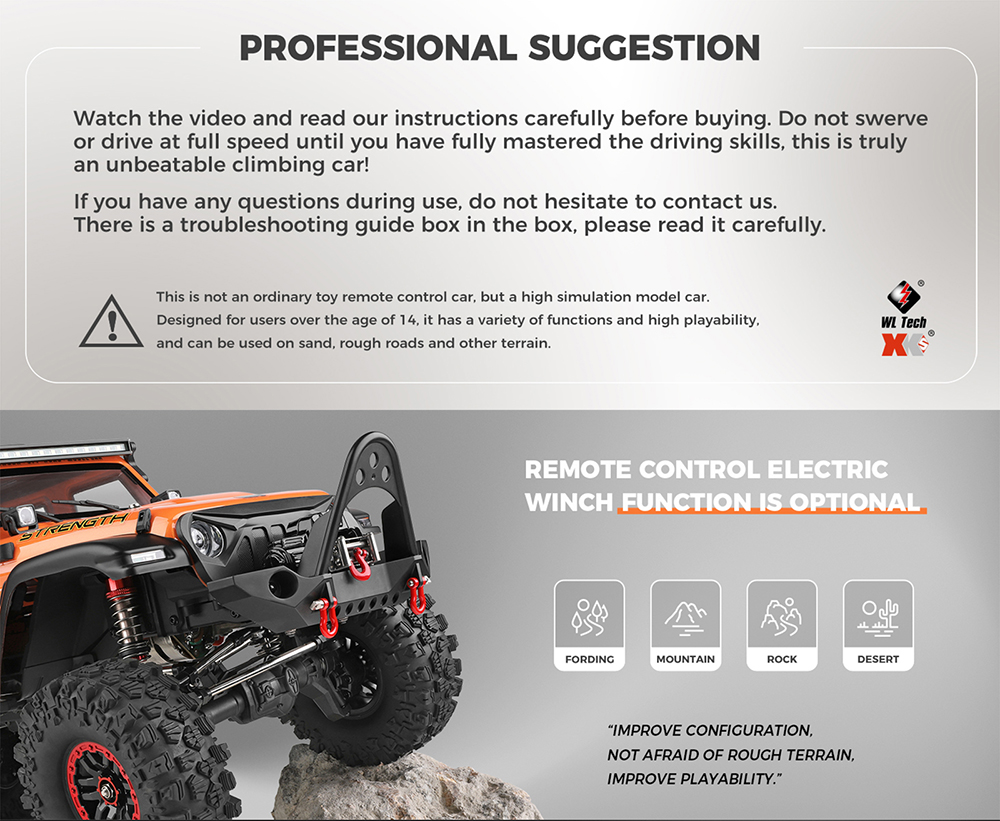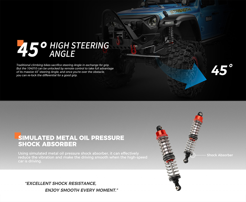 WLtoys 104010 1:10 electric climbing car full simulation structure design, full real car handling feeling, The cool lights of the whole car allow you to have a different visual experience.