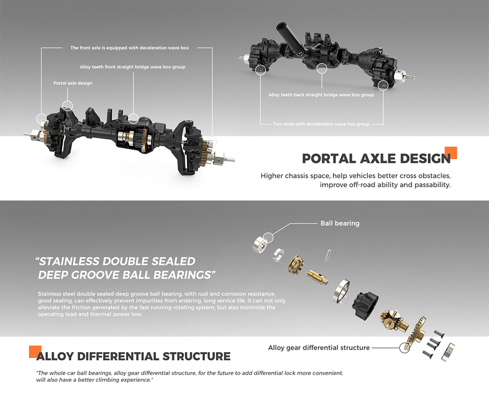 5. 40 Ball bearings of the whole car, alloy gear differential structure. Have a better climbing experience.