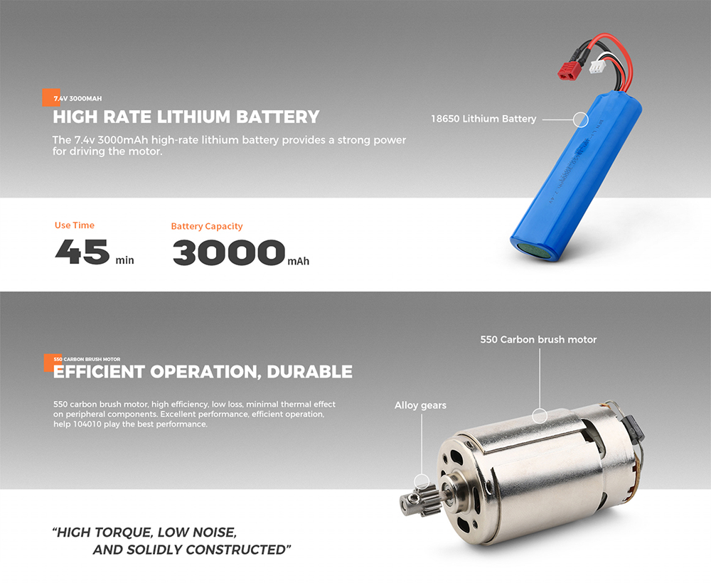 7. The 15C 7.4v 3000mAh high-rate lithium battery providesa strong power for driving the motor.