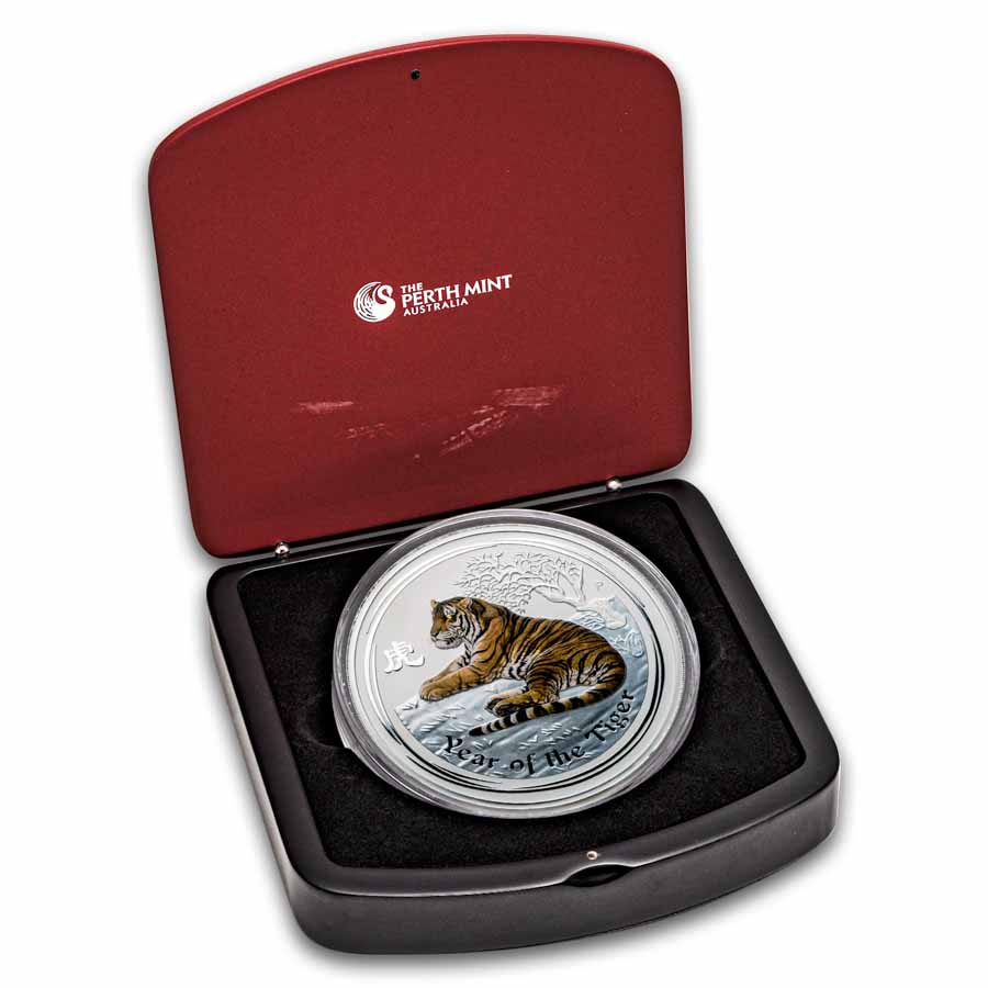 APMEX is an authorized distributor of Perth Mint products, allowing APMEX to get coins directly from The Perth Mint and pass them along to you. This Year of the Tiger coin would make a great addition to any lunar collection. Add this spectacular 2010 1 kilo Colorized Silver Year of the Tiger coin to your cart today!