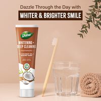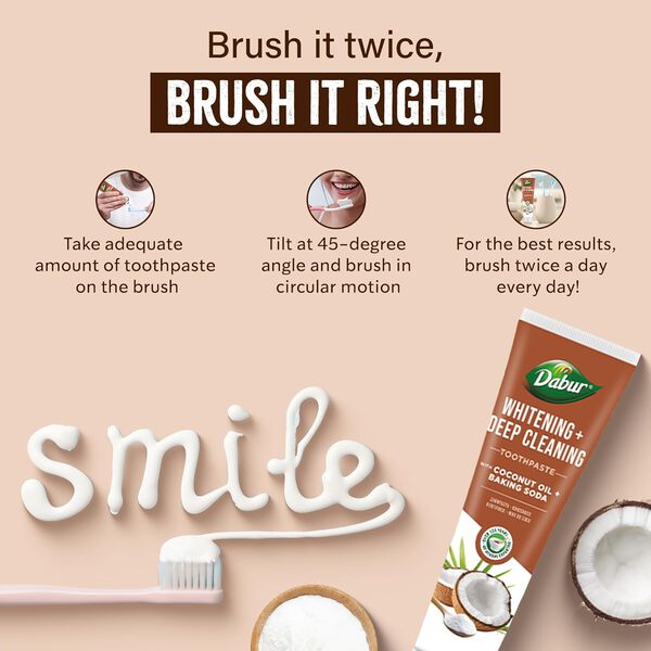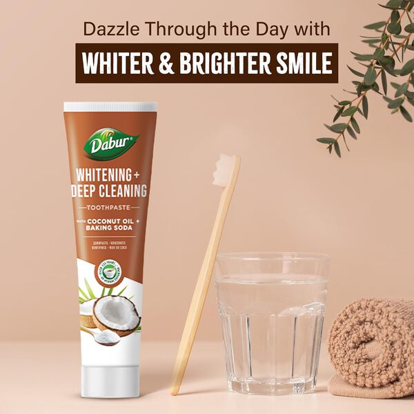 Achieve a radiant smile with Dabur Whitening Deep Cleansing Coconut Oil & Baking Soda Toothpaste. Made with 100% organic coconut oil and natural baking soda, this fluoride-free formula offers the perfect balance between whitening and deep cleaning. It gently removes plaque, stains, and odor-causing bacteria while nourishing tooth enamel and promoting overall oral health. Safe, natural, and effective, it’s your go-to choice for fresher breath and whiter teeth.