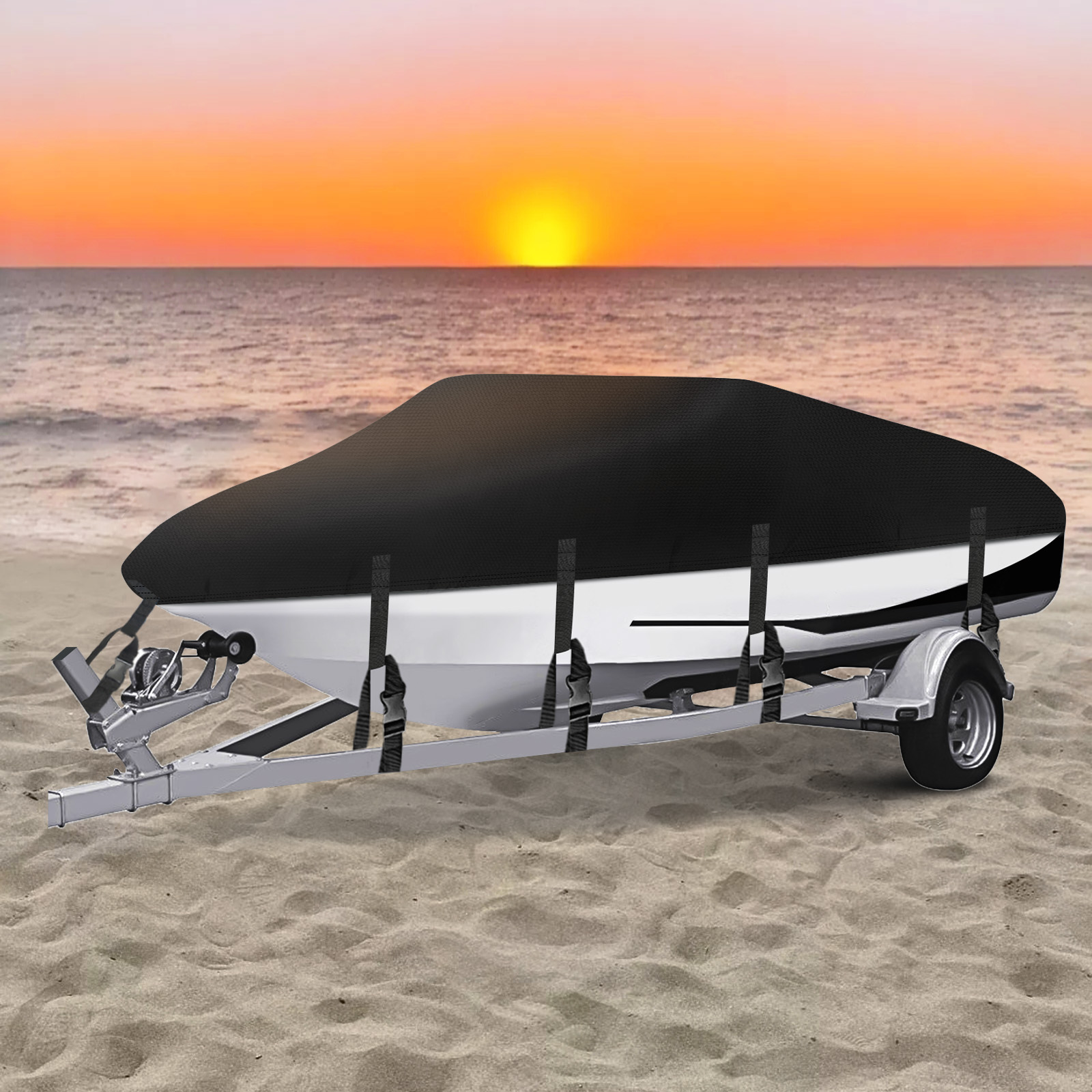 【Material】 --- Made of 210D oxford fabric material. Trailerable boat cover made of durable marine grade oxford fabric with water-resistant PVC coating and anti-UV finish. Bass boat cover will protect your boat perfectly from the sun, wind, dust, and bad weather, and keep your boat always in good condition.