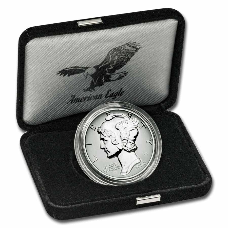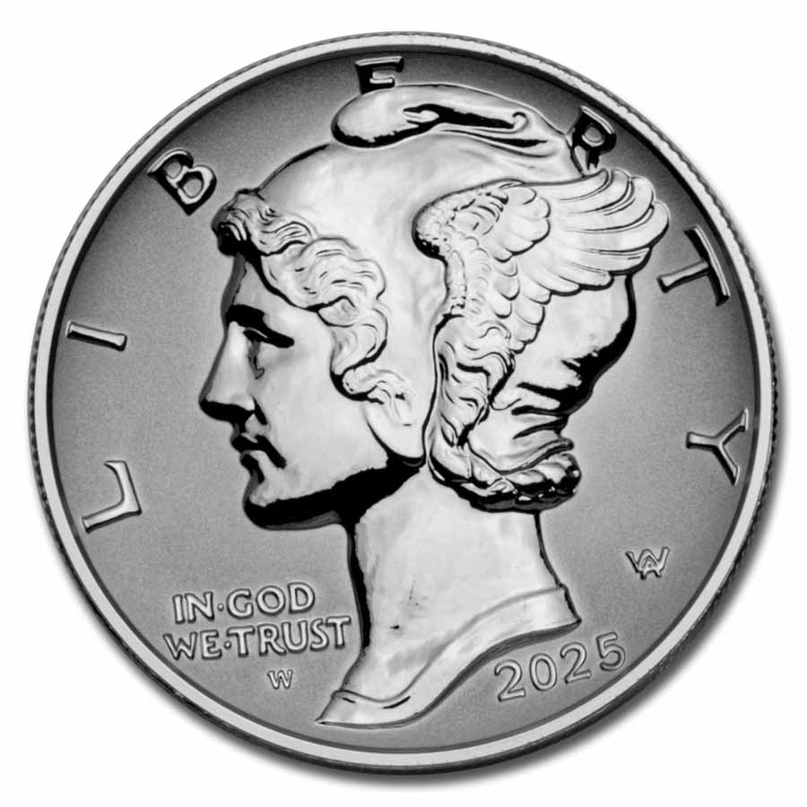 - Obverse: A young depiction of Liberty with a winged Phrygian cap, reminiscent of the Roman god Mercury. Adapted from Adolph Weinman's classic design first used on the Mercury Dime in 1916.