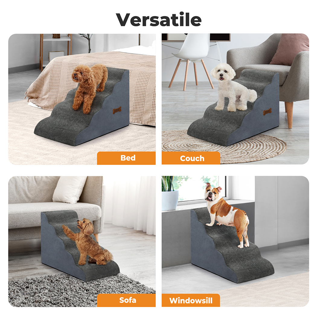 The non-slip bottom ensures stability, preventing any wobbling or movement, while the smooth zipper and removable washable cover make maintenance a breeze. Whether used as dog steps for small breeds or a dog ramp for elderly pets, they’re designed for safety and ease. With a convenient portable handle, these Pawz stairs are easy to move around, making them perfect for small pets, older dogs, and injured animals.