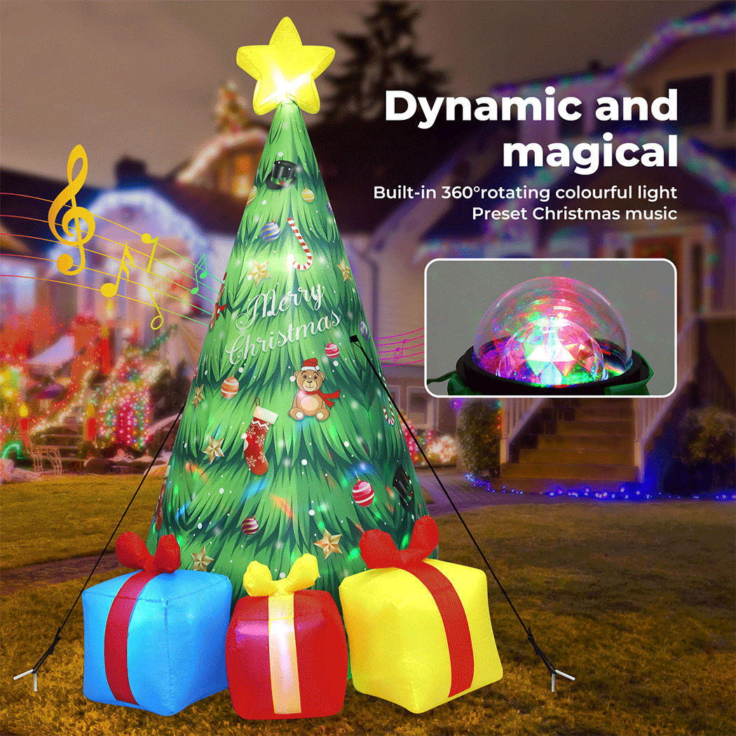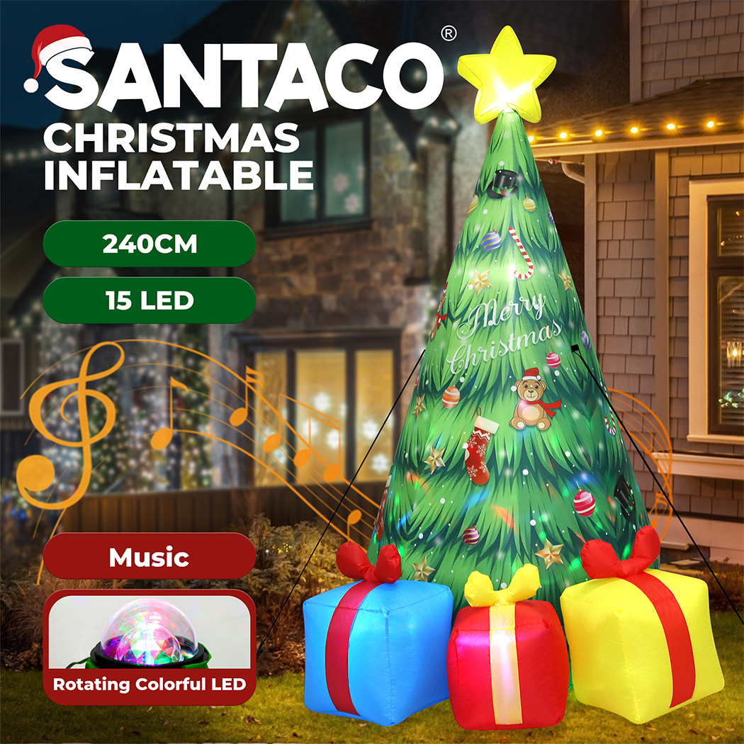 Santaco 2.4m Inflatable Christmas Tree Music Rotated LED Lights Outdoor Decor