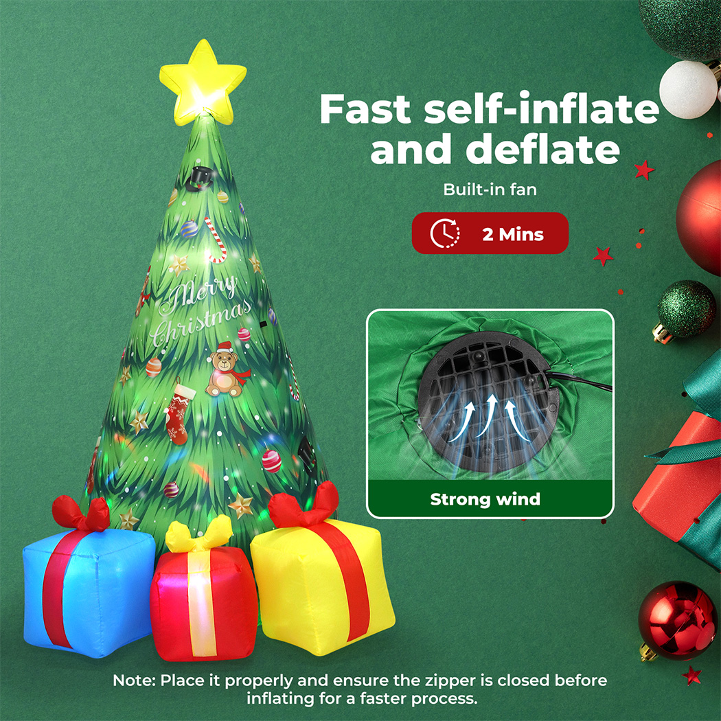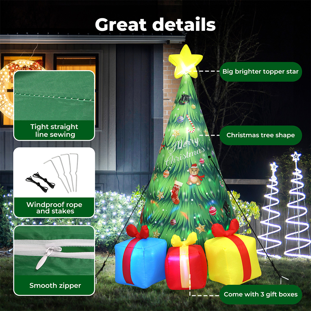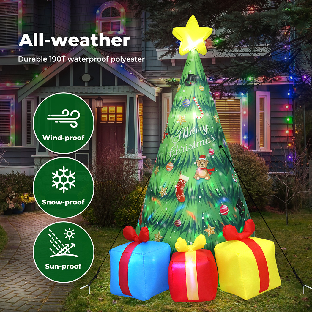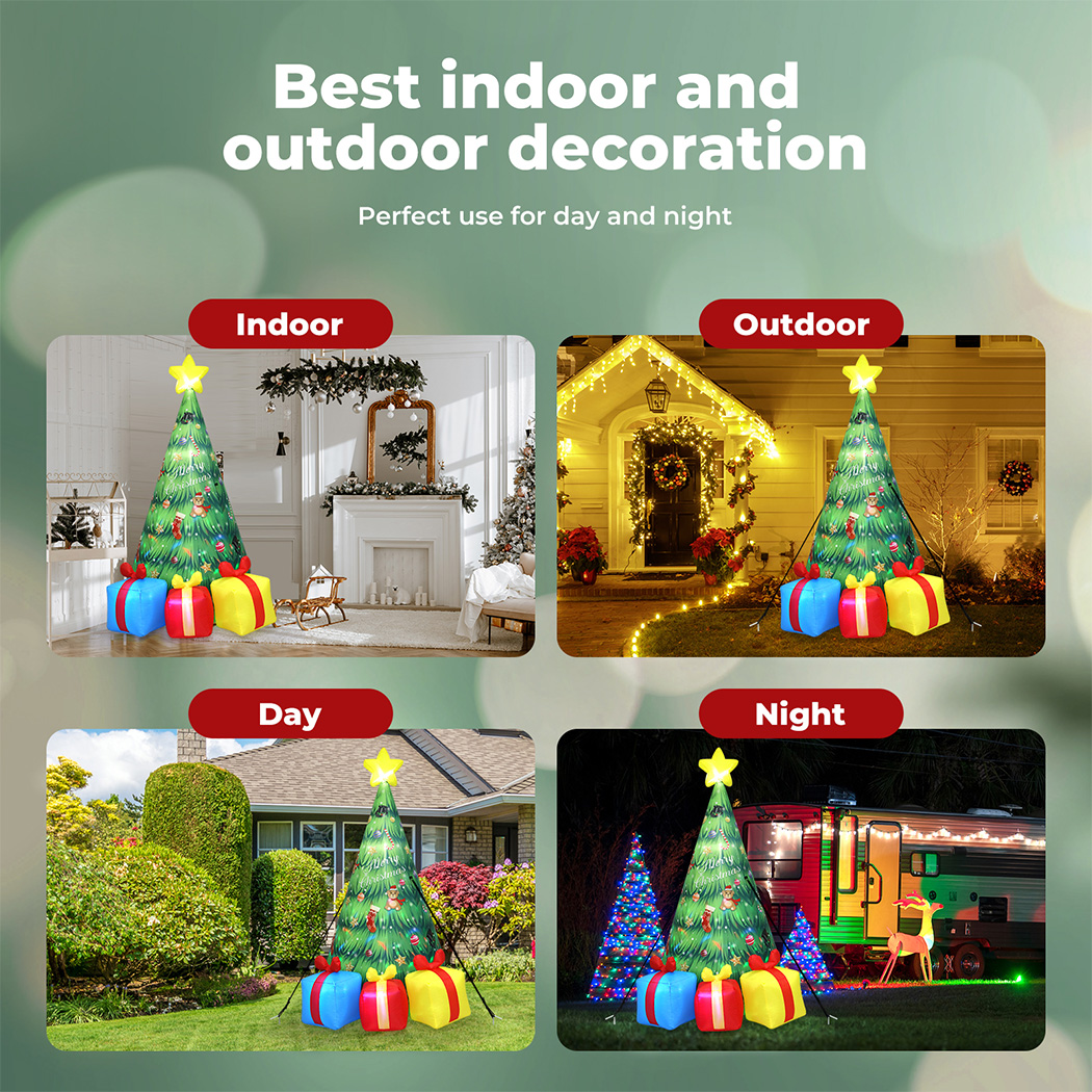 Bring the magic of Christmas to life with the Santaco 240CM (7.9ft) Inflatable Christmas Tree! This festive blow up tree is the perfect way to light up your yard, party, or indoor space with holiday cheer. Featuring bright rotating 7-color LED lights and joyful music, this inflatable Christmas tree creates a captivating centerpiece for any celebration. Made from waterproof 190T polyester and built for durability, it handles outdoor weather with ease. Whether you’re decorating your lawn, porch, or event venue, Santaco Christmas inflatables bring unforgettable holiday joy.