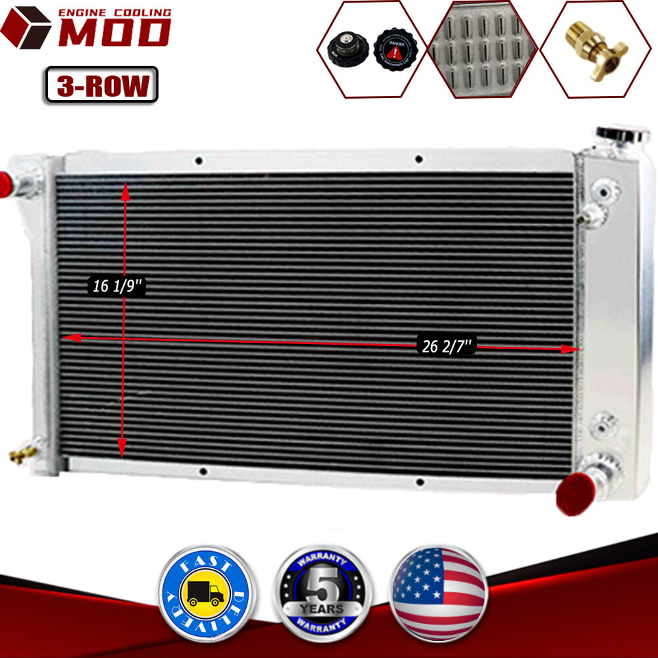 This aluminum radiator is designed to provide maximum cooling efficiency to prevent premature engine failure. Its light-weight, and high-heat transferring aluminum features a tube and fin design that, dramatically increases surface area that enables the heat to dissipate more efficiently. This Aluminum Radiator is at least 35% to 45% more efficient than stock ones. Most importantly, it has a much higher capacity for coolant than stock ones, which means that your cooling system will be more efficient and will be more resistant to temperature surges in racing applications.