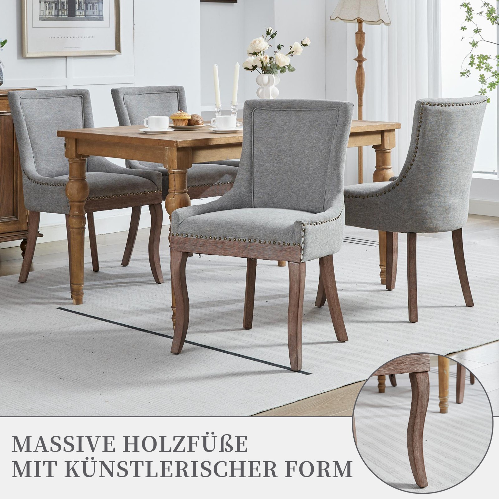 Dieses 2er Set Esszimmerstühle kombiniert Eleganz, Komfort und Stabilität. Der weiche Chenille-Bezug und der hochdichte Schwamm mit Stahl-Federkern sorgen für ein angenehmes Sitzgefühl, während die geschwungene hohe Rückenlehne optimalen Halt bietet. Die umlaufenden Nieten setzen stilvolle Akzente, die Massivholz-Füße garantieren einen sicheren Stand und die Fußpads schützen Ihren Boden. Dank der einfachen Montage ist der Stuhl in wenigen Minuten einsatzbereit. Ideal für das Esszimmer, Wohnzimmer oder jeden Wohnbereich, in dem Komfort und Design aufeinandertreffen.