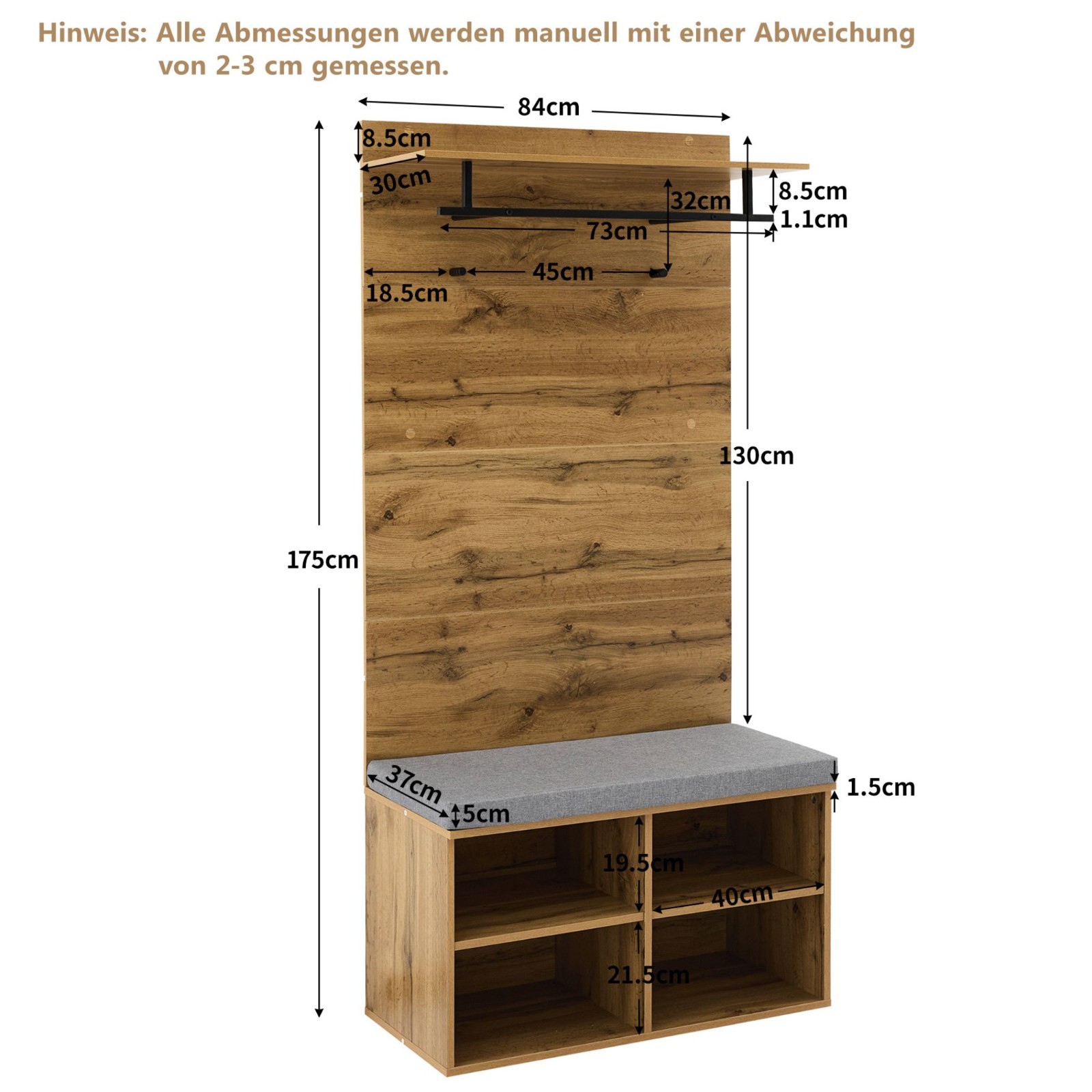 Bequeme Schuhbank: Die 84 cm breite Bank mit weichem Kissen bietet Komfort beim Schuhe wechseln und fungiert gleichzeitig als zusätzliche Sitzgelegenheit im Flur. Ideal für alle, die Funktionalität und Komfort vereinen möchten.