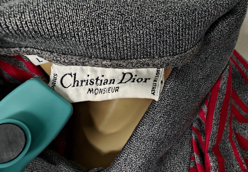 You are bidding on a Vintage 80s Mens Christian Dior Monsieur red & gray striped polo shirt