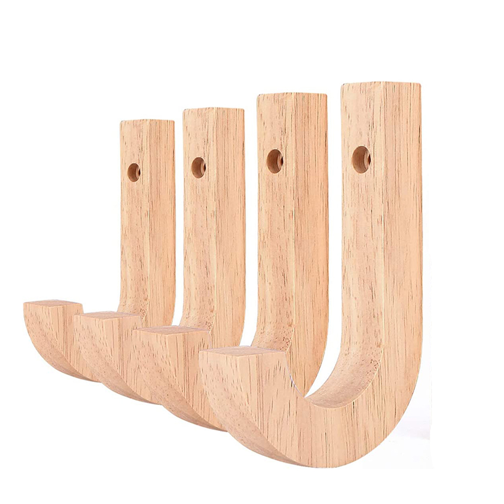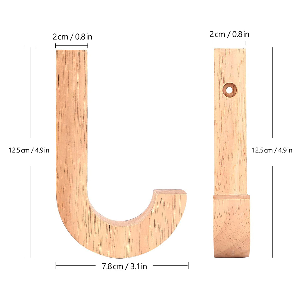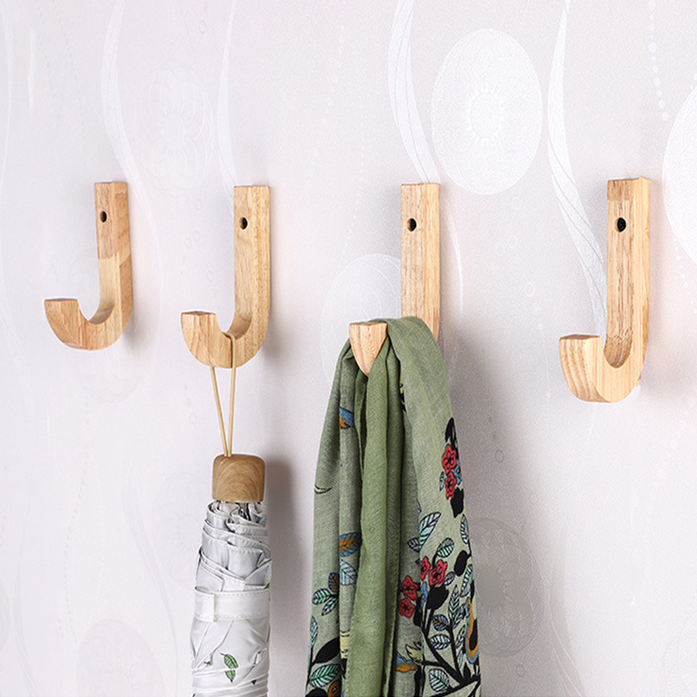 • Oak Wood Hook J Shape Coat Rack Organizer for Bathroom Towel Hat Keys Hanging