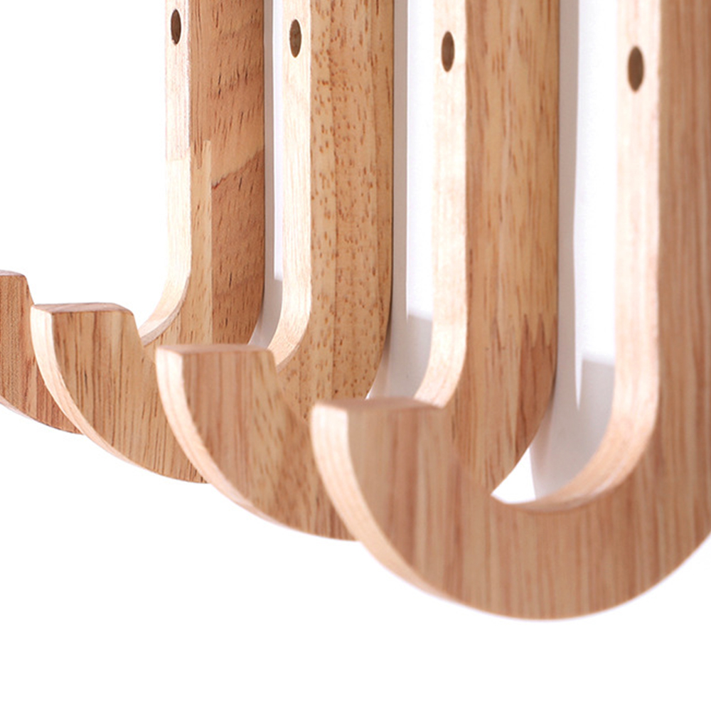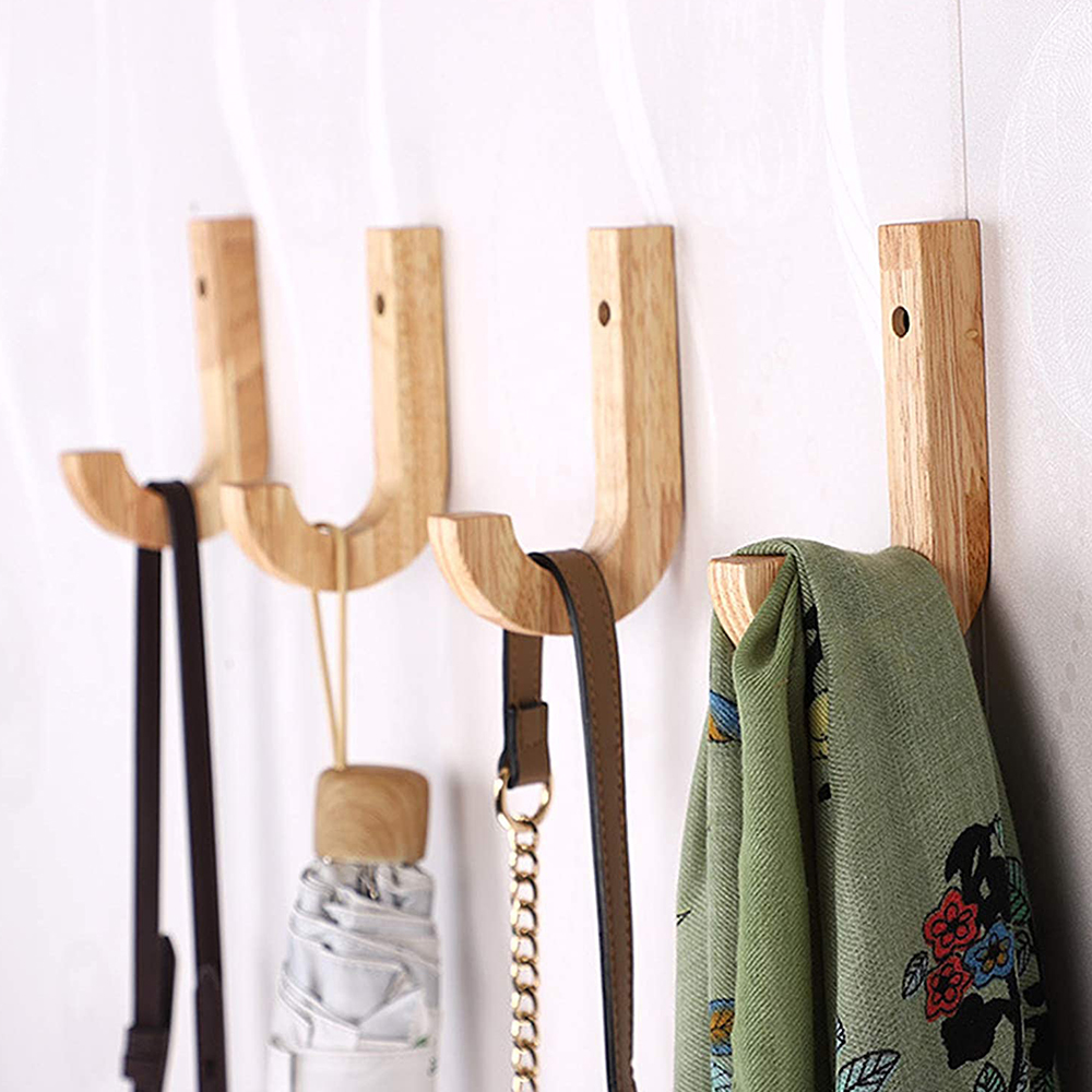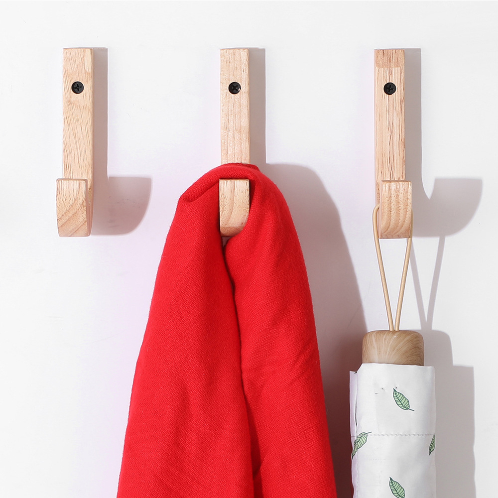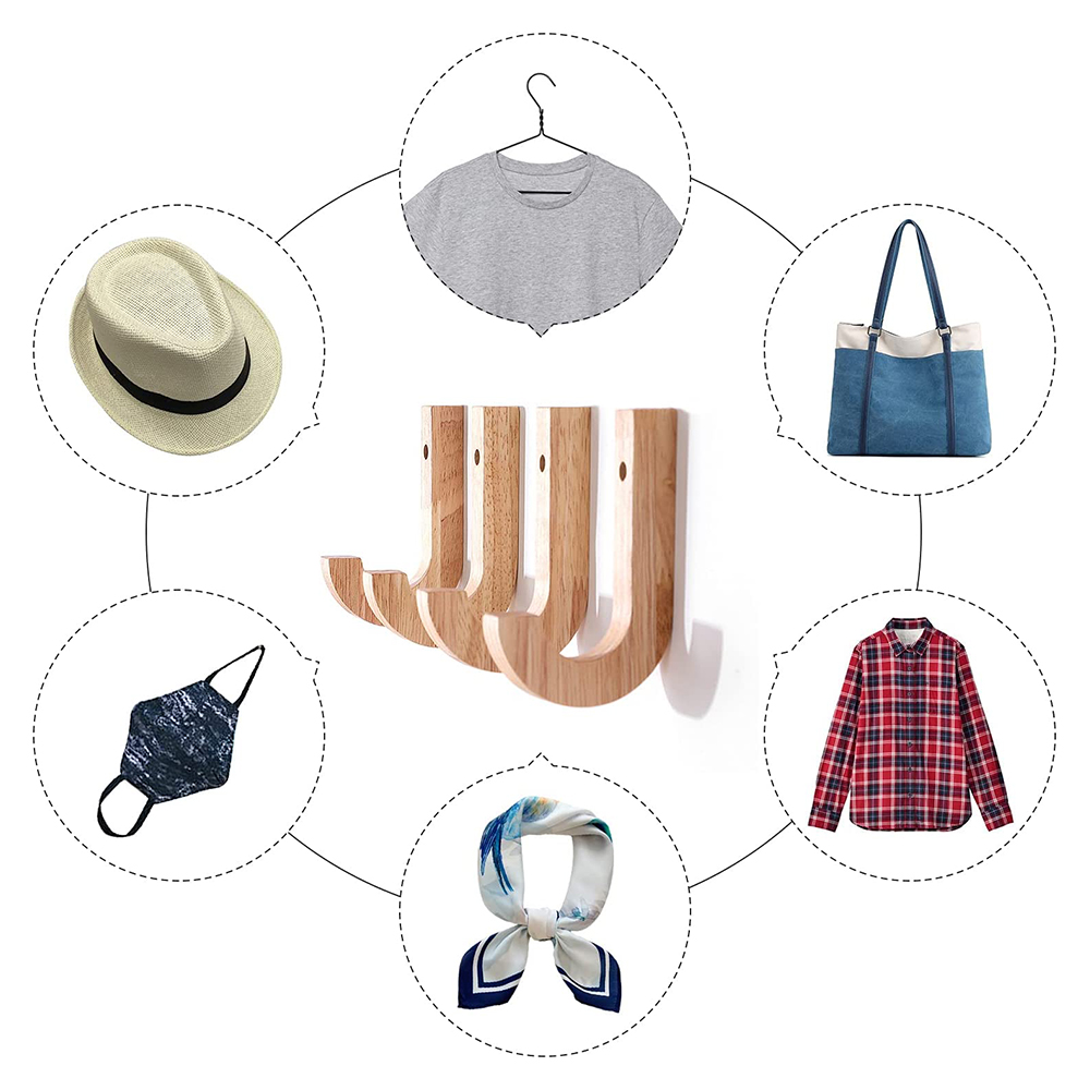 • Oak Wood Hook J Shape Coat Rack Organizer for Bathroom Towel Hat Keys Hanging