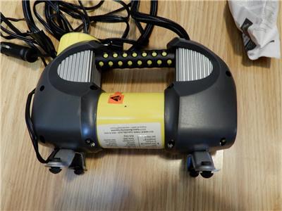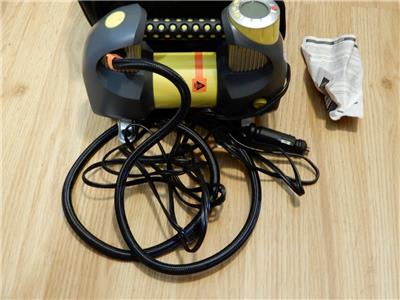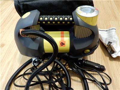 Countdown timer displays remaining fill time, 3 Superbright LED work lights, Back-Lit display for night time use, 4 foot air hose, 10 foot power cord, Storage bag included