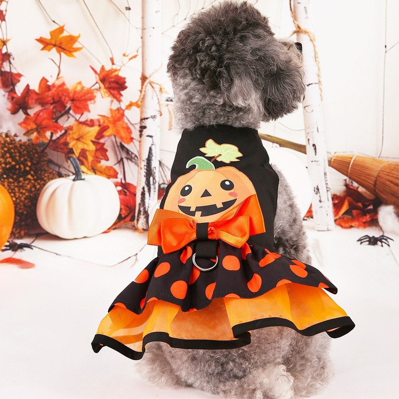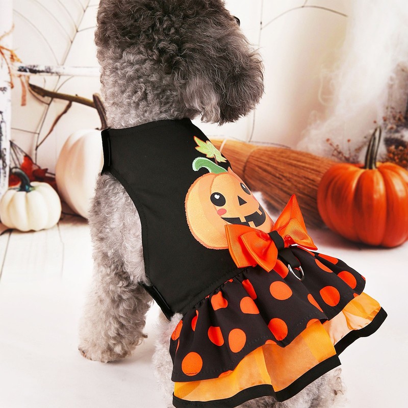 The pumpkin print and polka-dot print create a unique and eye-catching look, making your dog stand out in the crowd and following the trendy Halloween aesthetic.