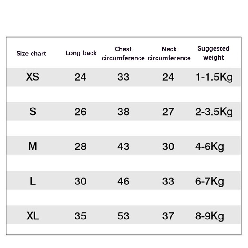 | Tag No. | Recommended Size | Back Length | Bust | Collar |