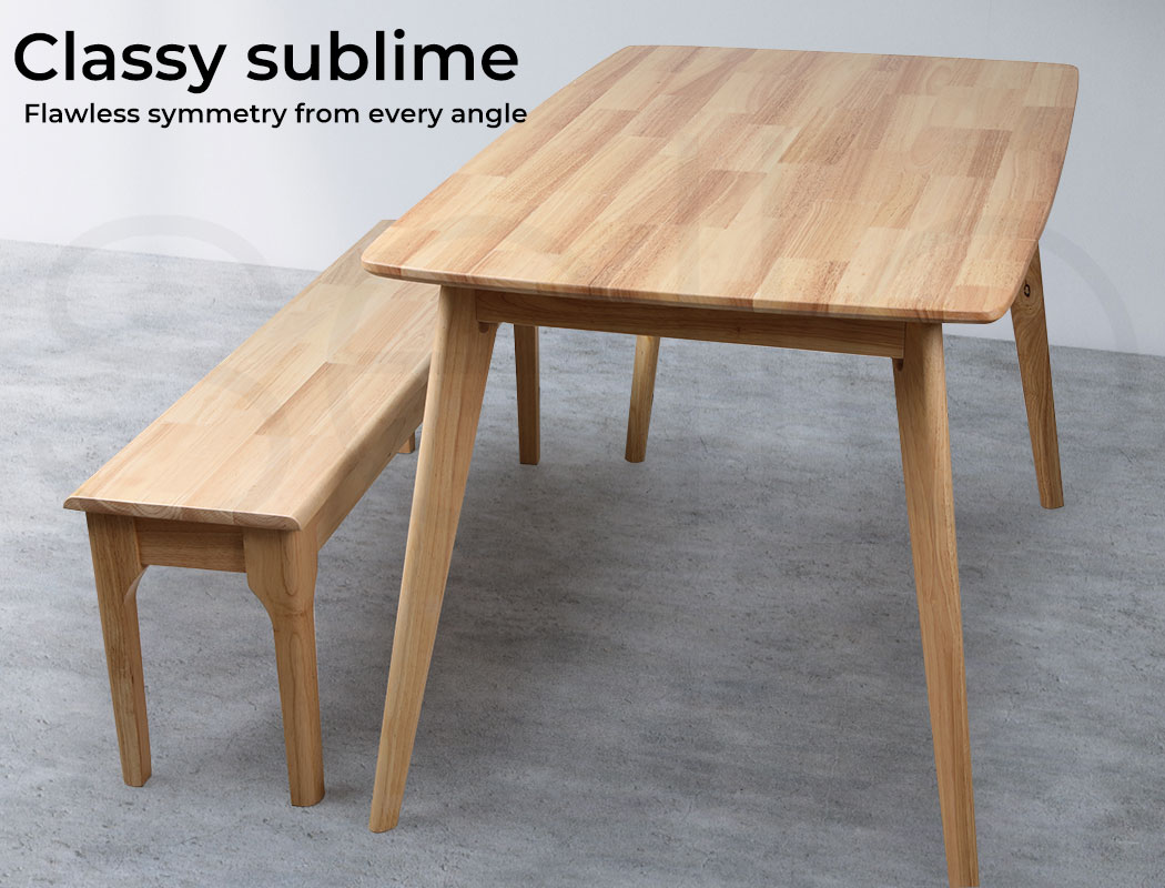 Our dining table is a seamless integration of quality and style. In terms of its quality, our product is made of solid wood to withstand long-term usage. The entire structure is stabilized and made steady using sturdy fixing. Its solid wood frame extends its life and adds in durability.