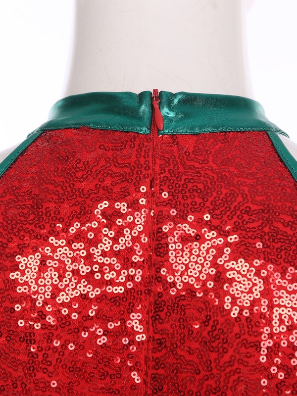 The color-block, shiny sequins and tulle inner layer create a festive and glamorous look.
