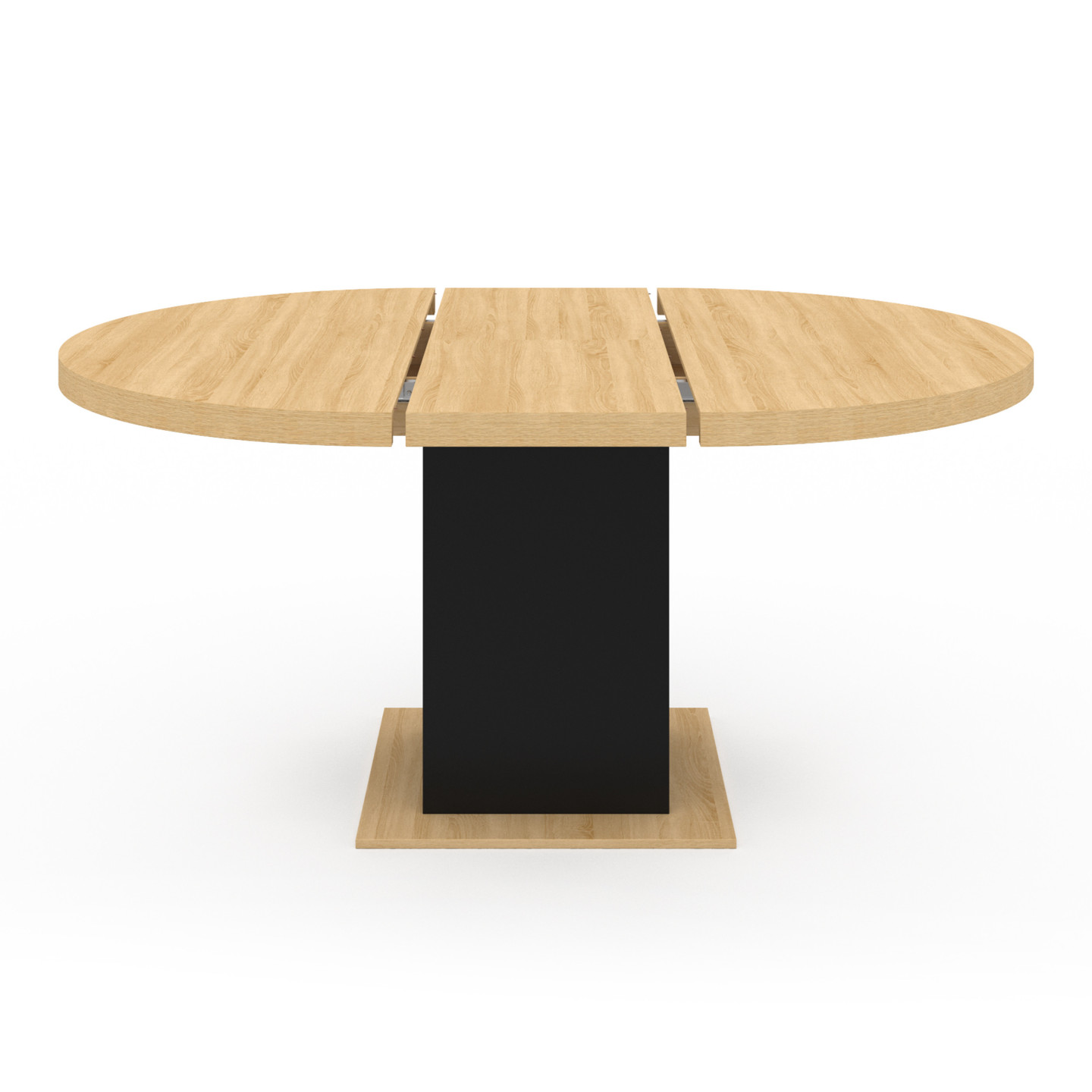 Vous avez une famille nombreuse ? Vous aimez recevoir vos proches ? Préparez de bons repas et partagez-les sur une table de salle à manger contemporaine. Avec son pied central noir et son plateau en bois clair, la table EDEN bois et noir s'intégrera parfaitement à votre intérieur en lui apportant un esprit moderne et design !Repas de famille, soirée conviviale entre amis... la table à manger extensible 4-8 personnes s'adapte à vos événements pour un moment convivial ! Grâce à son extension de 40 cm, passez en un rien de temps à un plateau de 160 cm de long pour accueillir toute la famille. Vous n'êtes que 4 ce soir ? L'extension se range discrètement sous le plateau, pour rester toujours à portée de main.Avec son pied central et son grand plateau épais, la table en bois EDEN est d'une grande stabilité et très robuste. Avec ses dimensions généreuses, cette table industrielle ronde 120/160 cm x 120 cm vous permet d'accueillir de nombreux convives pour de merveilleux moments de partage.Cette table à l'aspect massif aux lignes épurées sera la pièce maîtresse de votre salle à manger. Son style lui donne un aspect tendance qui s'adapte parfaitement aux univers classiques et contemporains. La combinaison des coloris effet hêtre et noir et d'un matériau chaleureux est une association parfaite pour apporter un look chic et sobre à votre salle à manger.Dimensions de la table de salle à manger extensible EDEN bois et noirDimensions globales : Longueur 120 cm x largeur 120 cm x Hauteur 75 cmDimensions globales avec l'extension : L. 160 x l. 120 x H. 75 cmMatériaux : panneaux de particules mélaminés (1,5 cm)Dimensions rallonge : L.40 x l.120 cmÉpaisseur totale du plateau : 5 cmDimensions du pied central : L.40 x l.40 cmDimensions du socle : L.60 x l.60 cmCapacité : 4 à 8 personnesÀ monter soi-mêmeRetrouvez toutes nos tables à manger disponibles sur notre boutique en ligne !