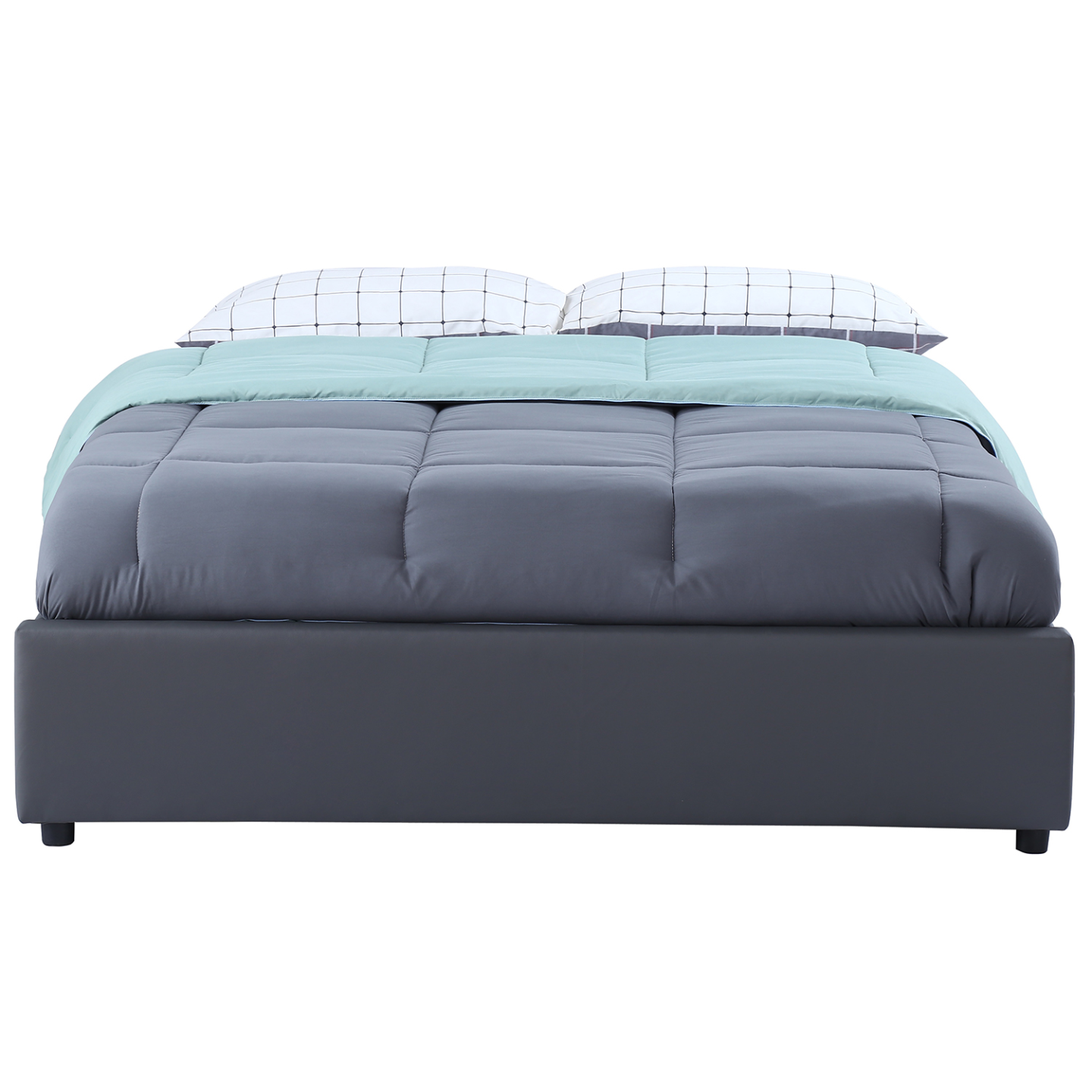Donnez une touche contemporaine à votre chambre à coucher avec le lit coffre double avec sommier MIAMI 160 x 200 CM ! Et donnez une seconde vie à votre espace de nuit ! En plus d'avoir des finitions soignées avec son revêtement polyuréthane résistant coloris gris, la structure du lit, pratique et fonctionnelle, abrite sous son sommier un coffre de rangement. Un gain de temps et d'espace ! Fini les oreillers empilés, laissez place à une chambre rangée en toute circonstance avec le lit Miami à rangement intégré. Pour votre propre chambre à coucher ou la chambre d'amis pour recevoir famille ou invités dans une chambre ordonnée. Fonctionnel, vous pouvez y ranger draps, couettes, édredons, et vêtements volumineux.Le coffre, de la dimension du lit, est facile à ouvrir et à fermer en un instant : le sommier est relevable en un tour de main grâce au mécanisme de vérins de levage.Stable et robuste, avec les pieds intégrés à la structure et sa barre transversale sous sommier avec 2 pieds métal centraux.Sommier à 24 lattes en bois tout confort. Zone lombaire renforcée grâce au resserrement des lattes pour garantir un confort optimal - Facilite l'aération du matelas, et apporte flexibilité au couchage.Stylé et pratique à la fois, sa couleur passe-partout s'adapte à tous les intérieurs.Dimensions du lit gris MIAMI avec coffre de rangement- Dimensions totales hors tout : Longueur 216 x largeur 173 x Hauteur 34,5 CM- Hauteur cadre de lit : 34,5 CM- Dimensions standard pour un matelas 160 x 200 CM 2 places- Nettoyage facile avec chiffon humide- Matelas non fourniNombre de colis :Carton 1 : 176 x 14,5 x 38 CM - poids 14 kgCarton 2 : 222 x 9,5 x 35 CM - poids 13 kgCarton 3 : 195,5 x 11 x 26 CM - poids 22 kg*Produit non livrable en CorseCe modèle de lit MIAMI est disponible dans d'autres coloris et d'autres dimensions :- Lit coffre double MIAMI avec sommier 140 x 190 CM PVC blanc- Lit coffre double MIAMI avec sommier 140 x 190 CM PVC gris- Lit coffre double MIAMI avec sommier 160 x 200 CM PVC blancRetrouvez l'ensemble de notre gamme de lits sur notre boutique en ligne !