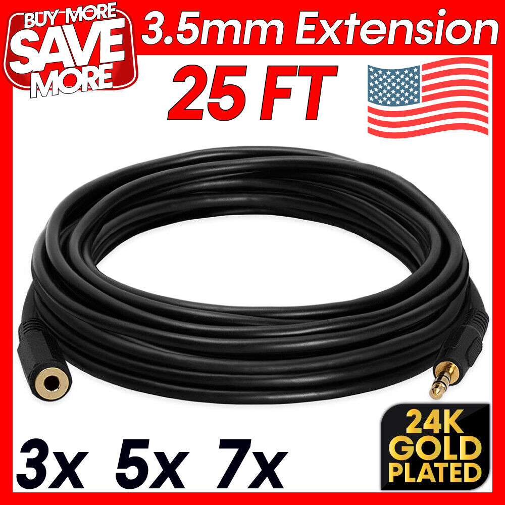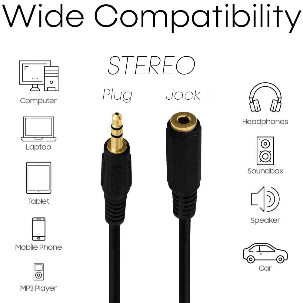 3.5mm 1/8" Stereo Audio Aux Headphone Cable Extension Cord Male to Female