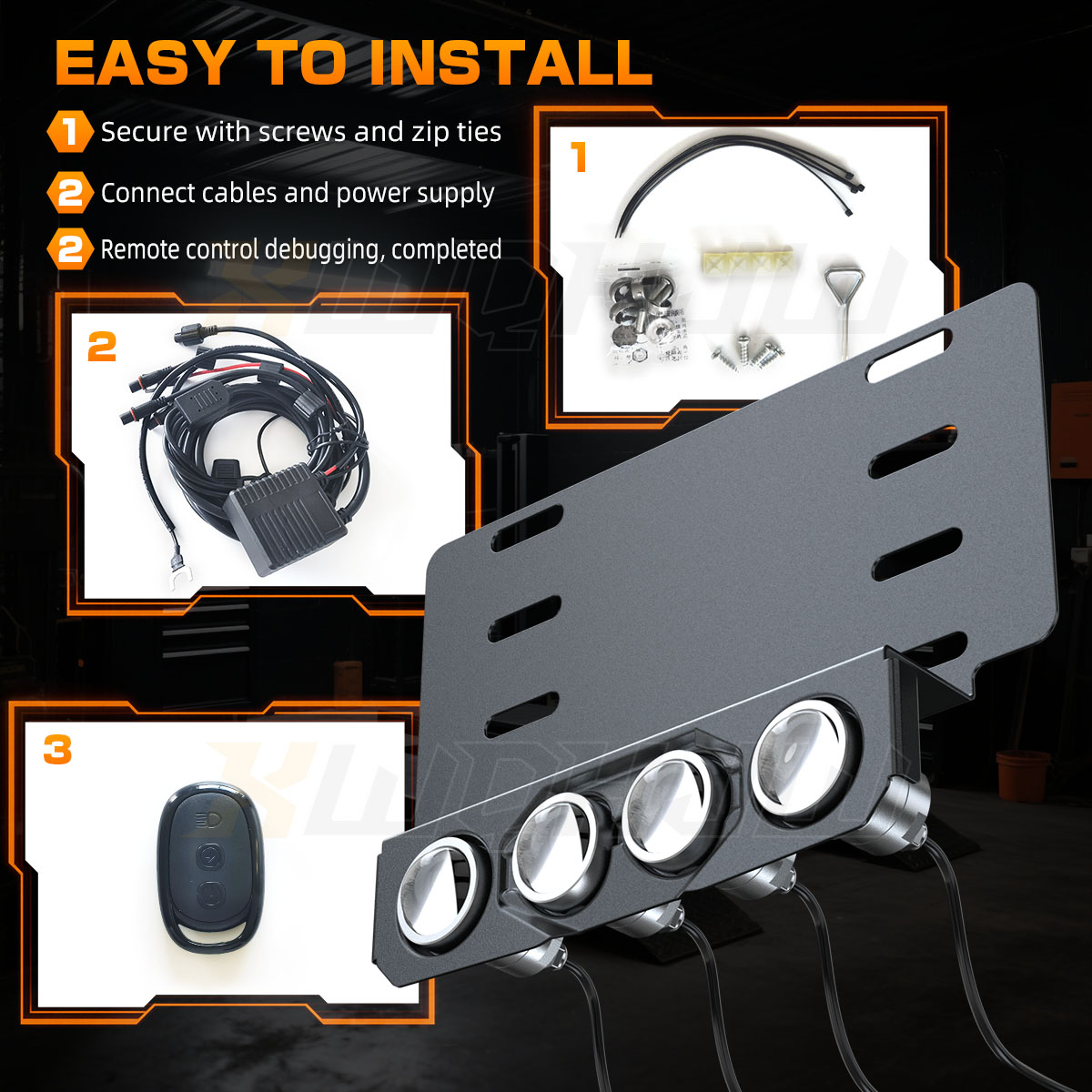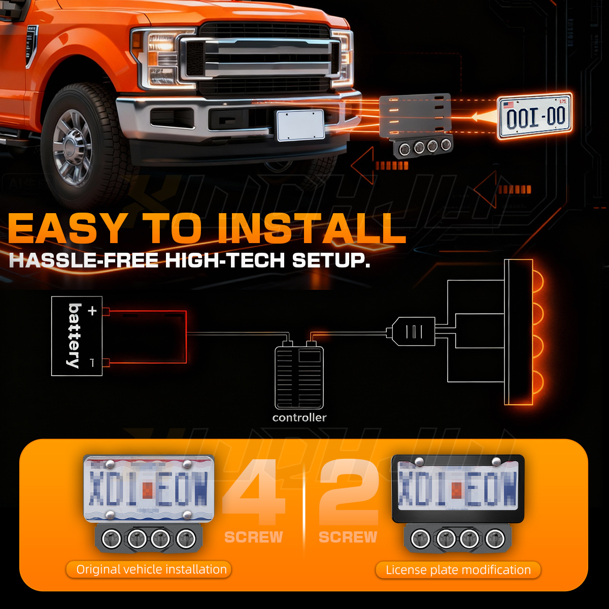 ● Easy installation: No drill, no modification required, just like to replace a license plate using its mount location, usually can be installed in 20 minutes. Multiple fixing points, installs behind number plate.