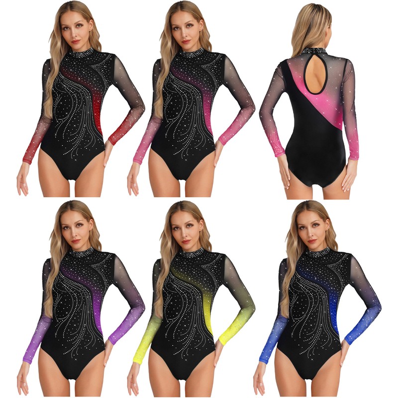 Sparkly rhinestones adorn the outfit, bringing a glamorous and eye-catching element, perfect for adding a touch of sparkle to any performance.