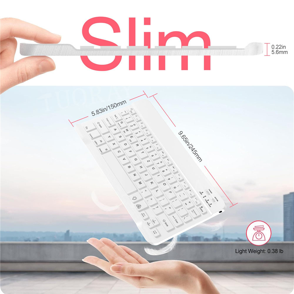 5. TRAGBAR: Tragbare drahtlose Tastatur, ultradünn und leicht, eignet sich hervorragend für unterwegs. Dank der kabellosen Verbindung können Sie überall im Raum in einer Entfernung von bis zu 10 Metern arbeiten.