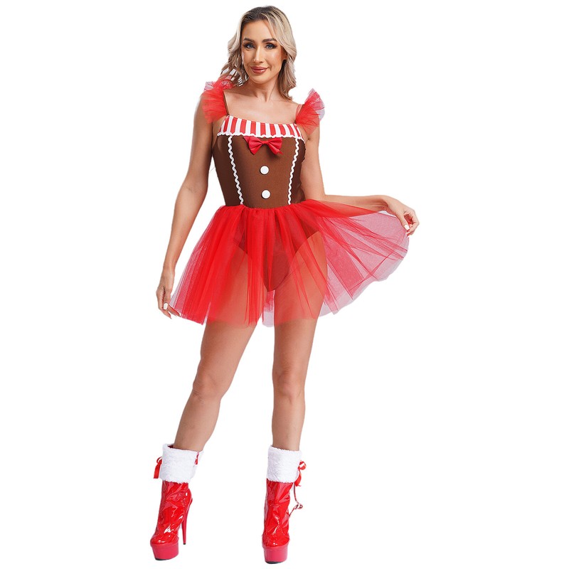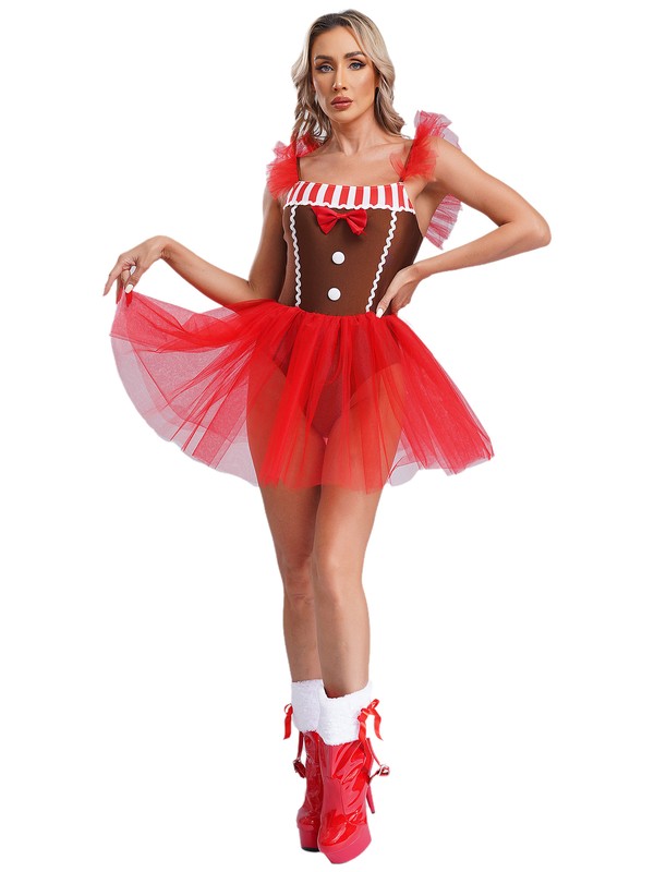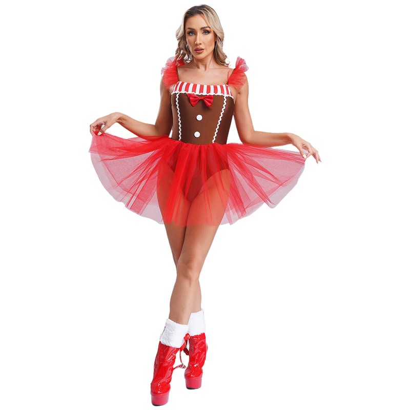 A Christmas gingerbread man costume tutu dress for women, adds fun to Christmas parties.