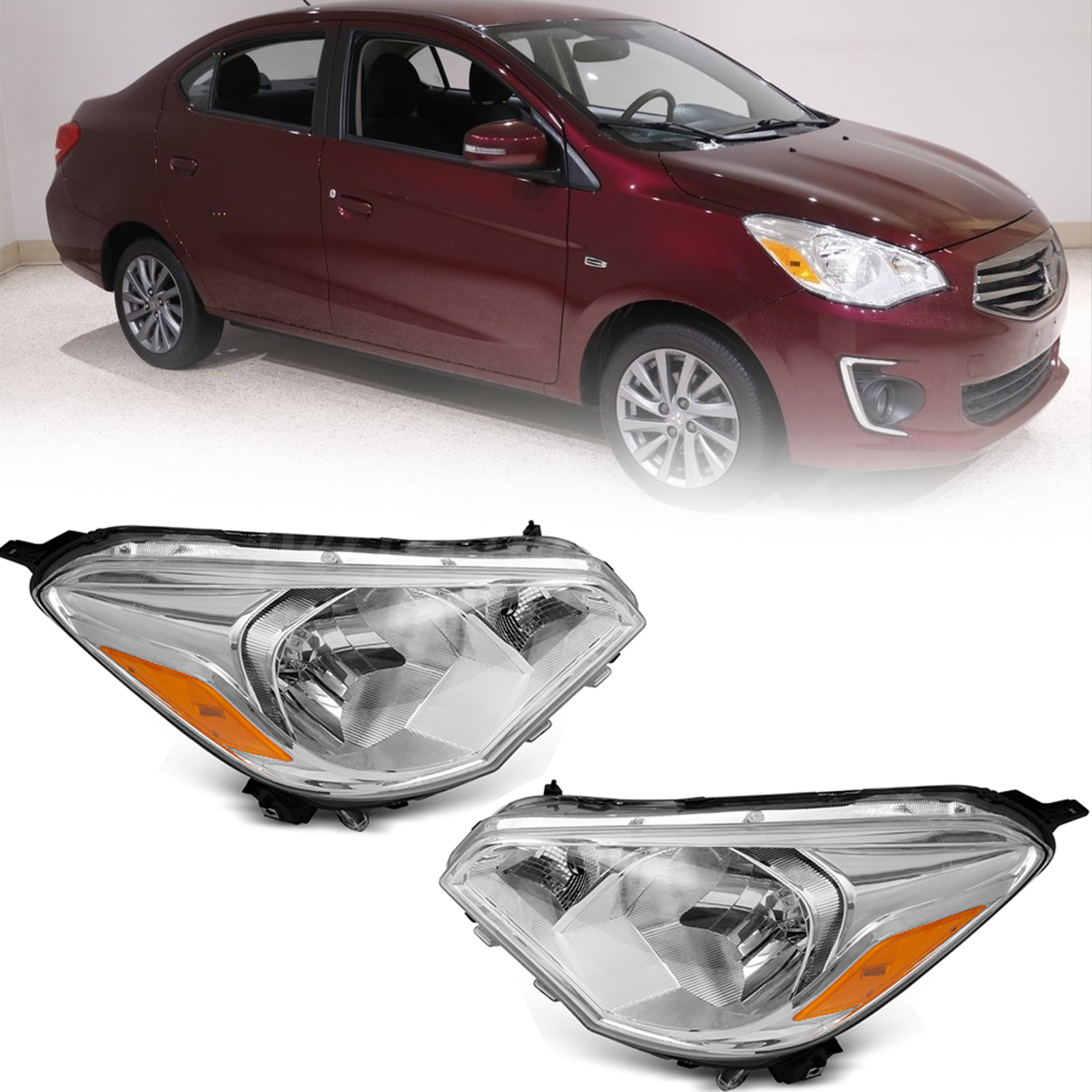 For 2017 2018 2019 2020 Mitsubishi Mirage G4 Pair Headlight Left+Right Headlamps