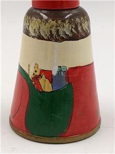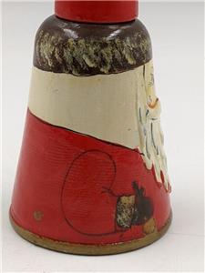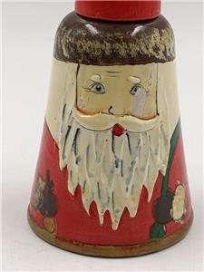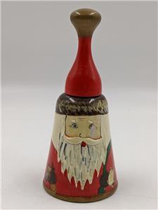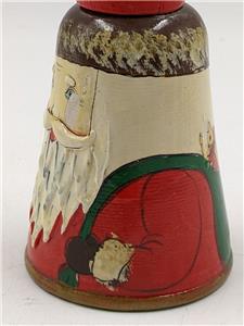 Vintage 6” Wooden Santa Claus Bell Hand-Painted