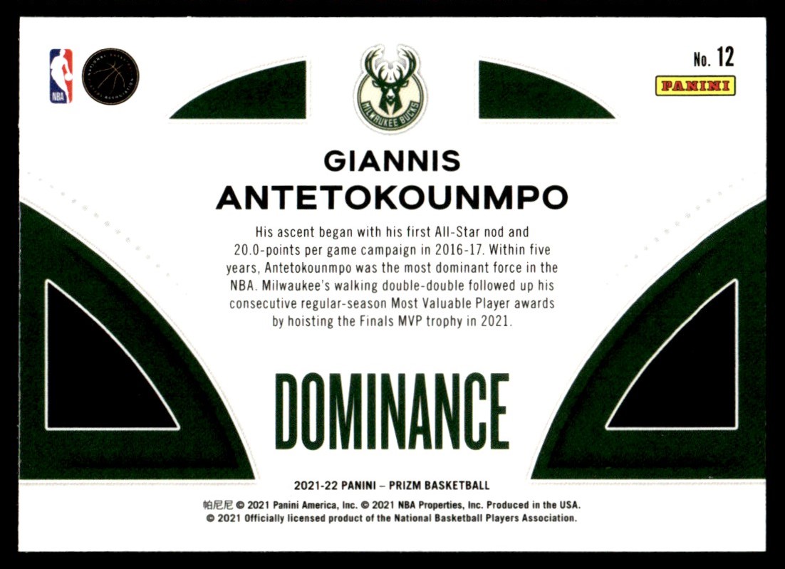 | 2021-22 Prizm Dominance Giannis Antetokounmpo #12 *B* |