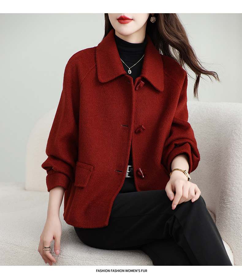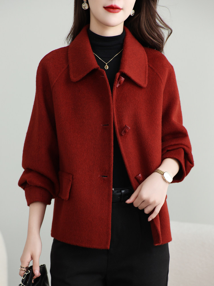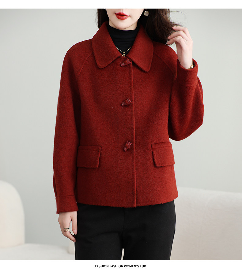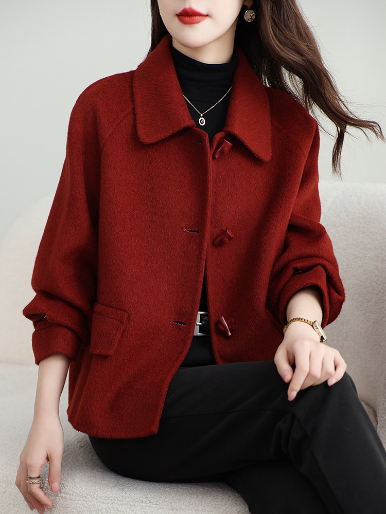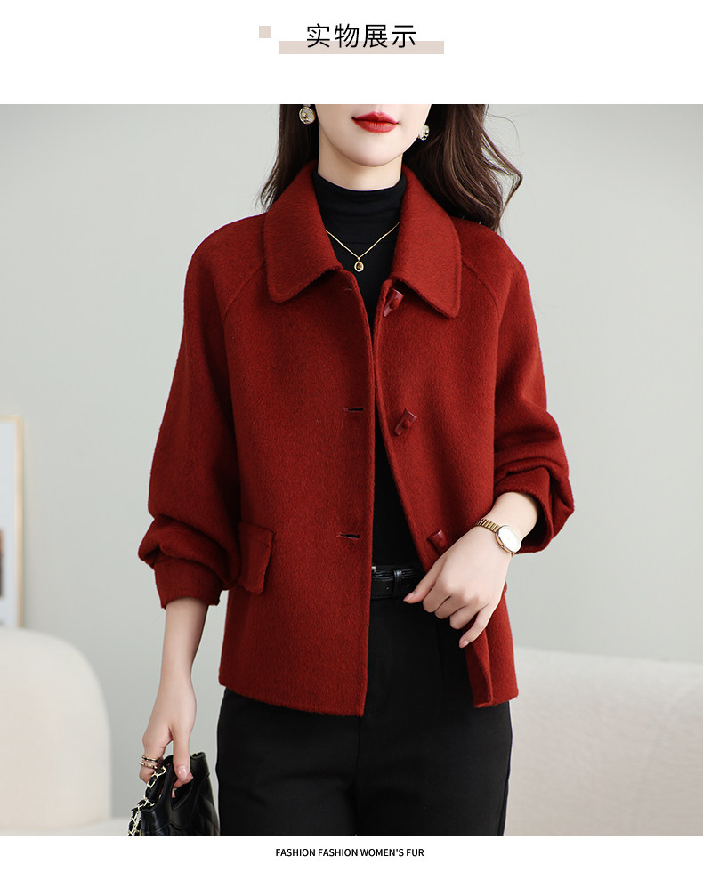 Red Double-sided Velvet Coat Women's Short 2025 Loose, Woolen Coat Old Money