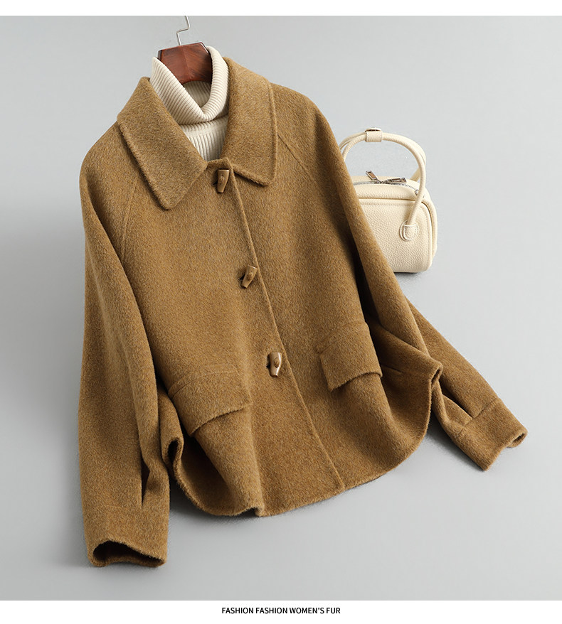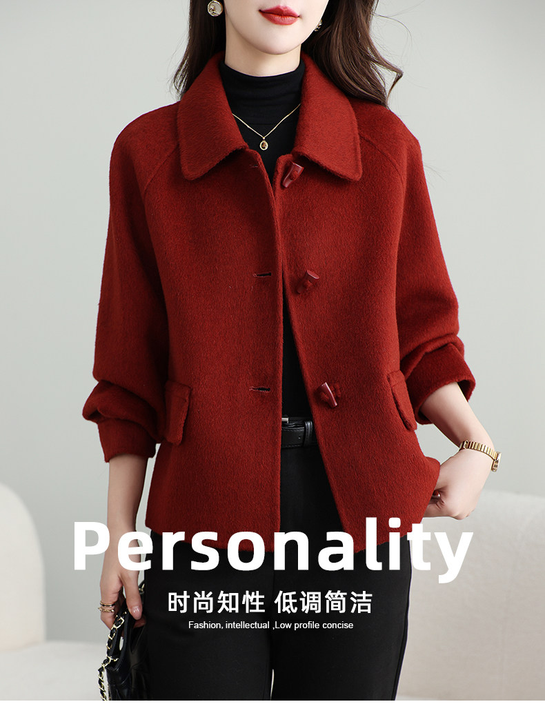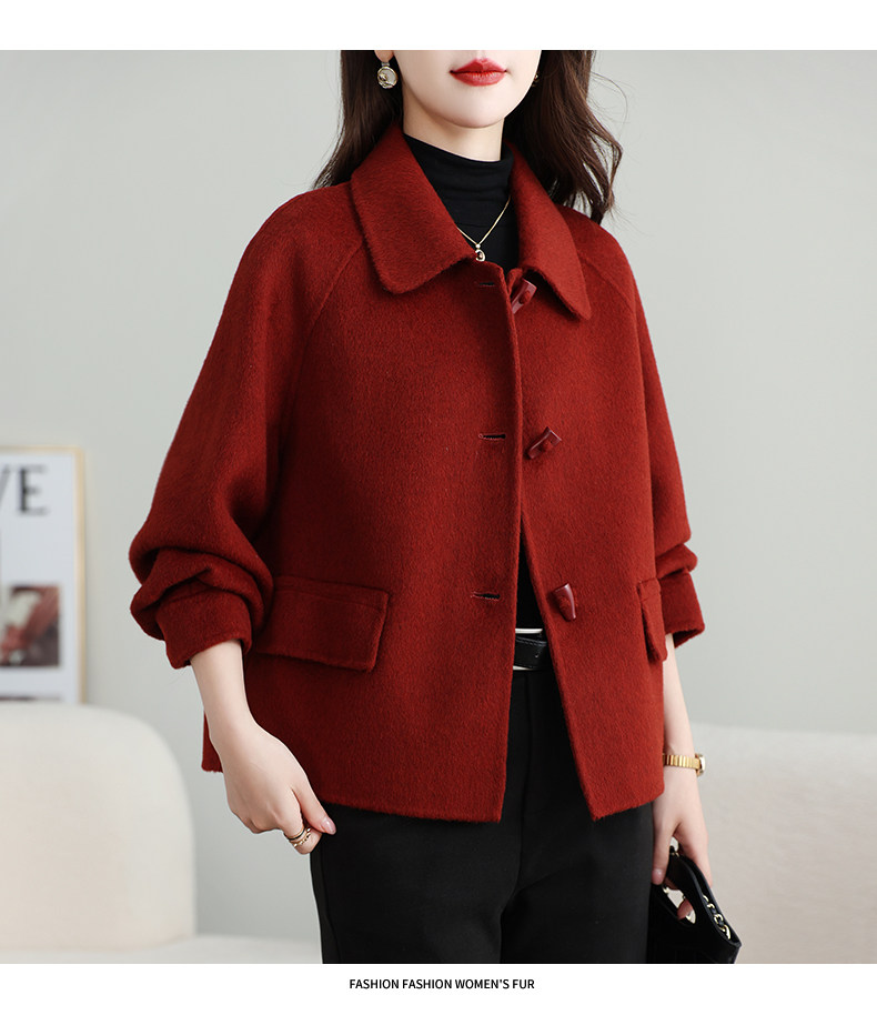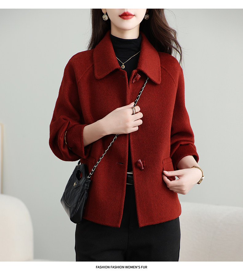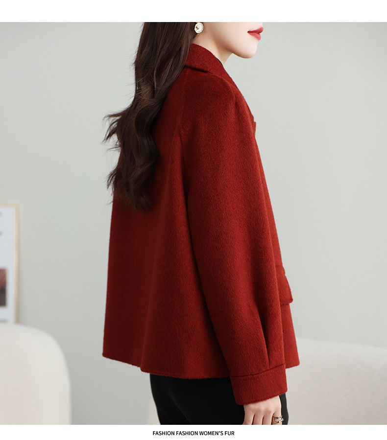 Red Double-sided Velvet Coat Women's Short 2025 Loose, Woolen Coat Old Money