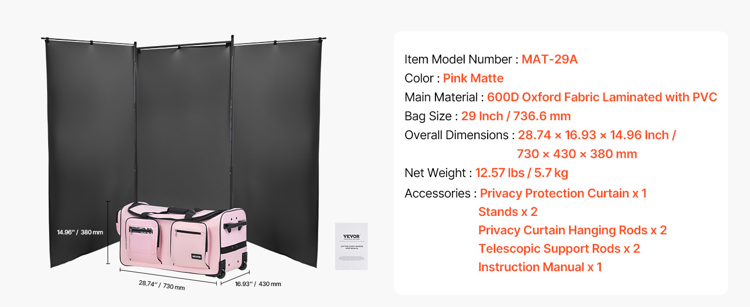 Our anti-tilt garment bag transforms into a portable mini wardrobe with a retractable stand and 10+ pockets. The curtain offers privacy for quick outfit changes. With a USB port and premium wheels, it facilitates movement and charging. The PU100 waterproof coating provides long-lasting reliability.