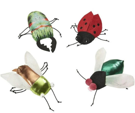 SPOT A-Door-Able Buzzing Insects is a touch activated catnip toy with realistic insect sounds. Easily attaches to any door frame with a pastic coated hanger that is safe for walls and door frames. Adjustable elastic cord allows you to set the desired toy height. Features a break-away safety clip to ensure a safe play time. Providing hours of entertainment for your cat, the bouncing insect toy is fun to bat and bobble to keep cats active. The touch-activated realistic buzzing insect sounds enourage cat's natural hunting instincts. Includes a catnip/silver vine blend. A fun toy that cats of all ages will enjoy leaping after. Includes one A-Door-Able hanging toy with a 5-inch Buzzing Insect in an assorted style (one of four bug styles will be sent)