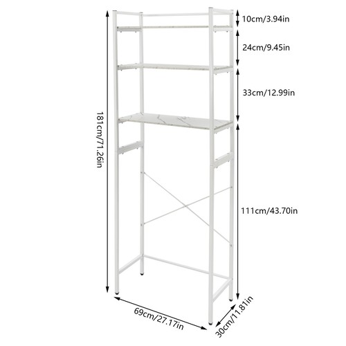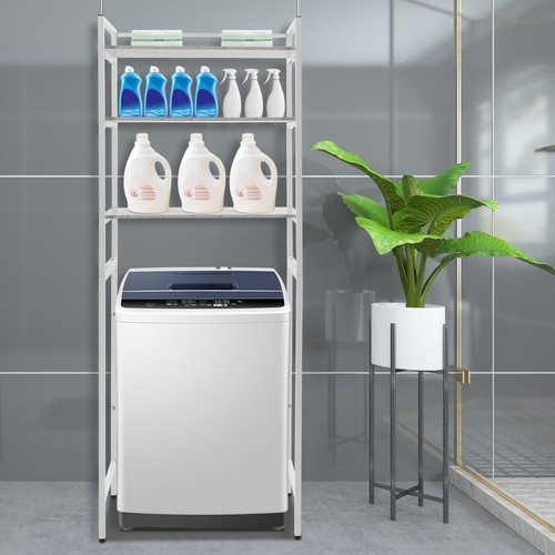Large Storage Space: 3 shelves can hold anything you want such as books, plants, toilet paper, cosmetics or anything you need, allowing you to make full use of the vertical space above the washer or dryer or the corner space for daily necessities.