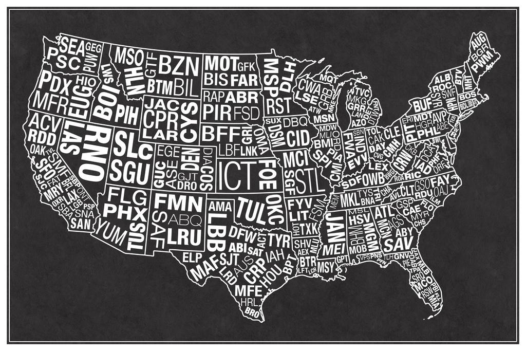 USA Airports Abbreviation Code Grey Aviation Airplane Aerospace USA Airport Code Directory Cool Wall Art Print Poster 16x24