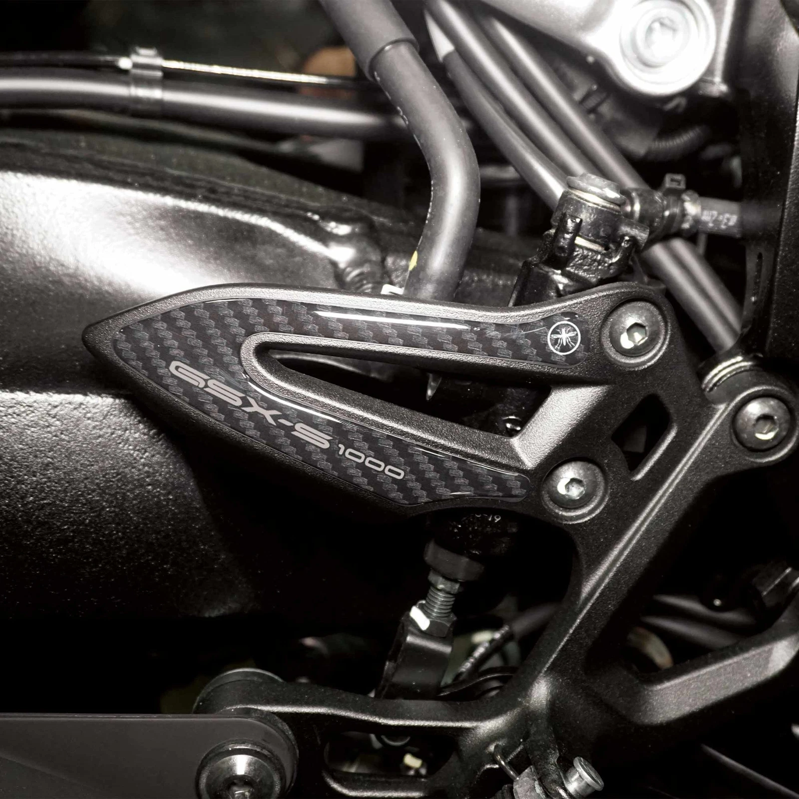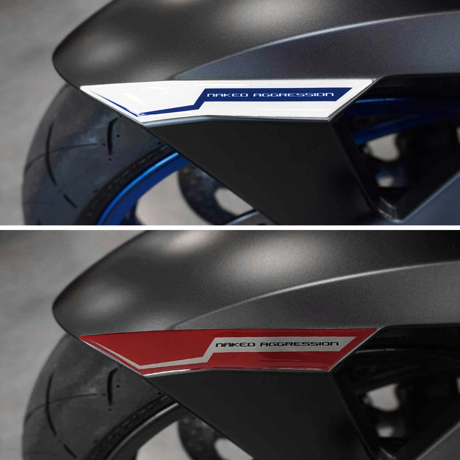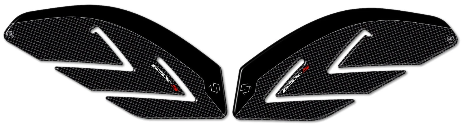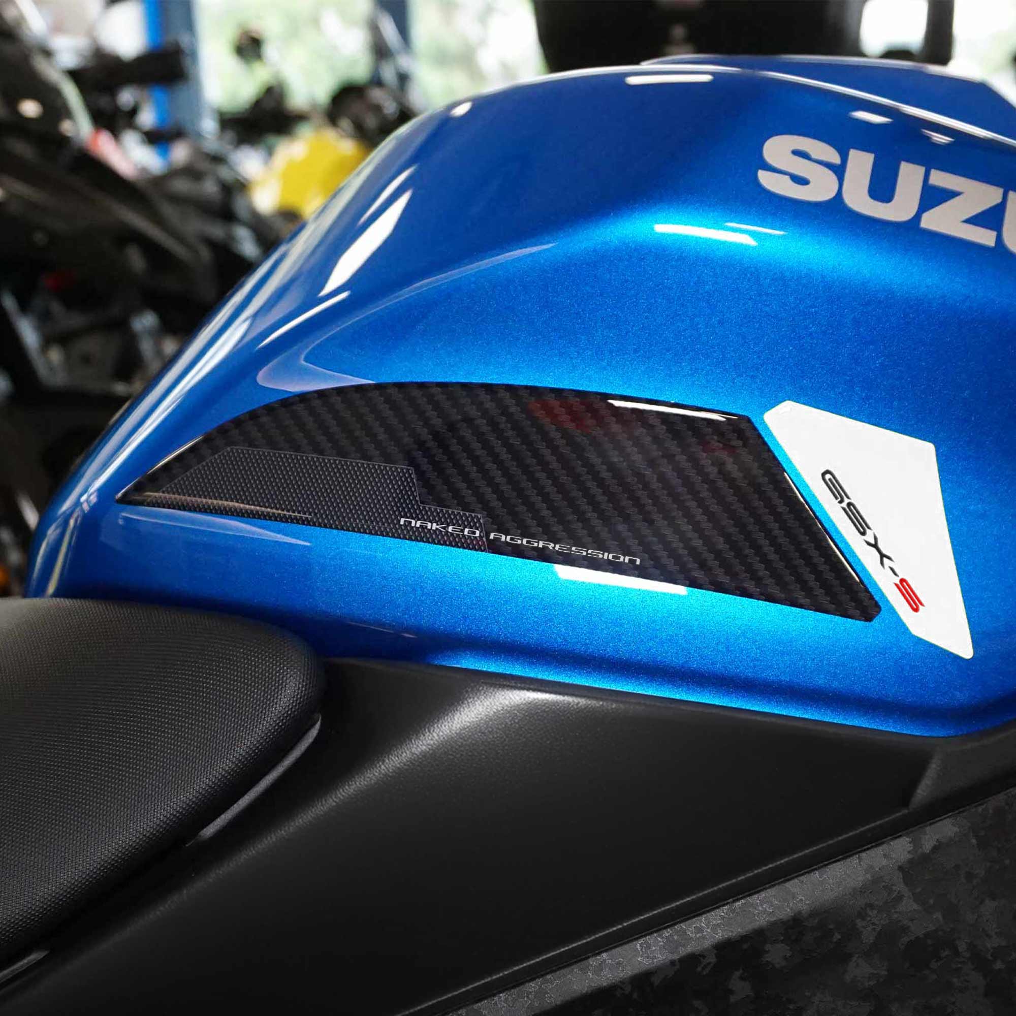 Adhesive protections resin by side area tank SUZUKI GSX-S 1000 2024 motorcycle. Two 3D gel resin stickers Exclusive - Labelbike®. Lateral stickers for tank Made in Italy made in Resin with 3D effect. Graphics for the coloring 2024 carbon look and white or carbon look and red with writings GSX-S Naked Aggression. They decorate and repair from impacts and scratches the tank of yours Suzuki GSXS 1000 2024, resist washing, weather and UV rays