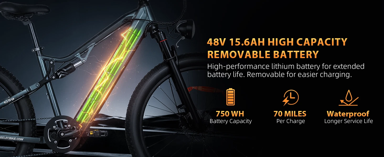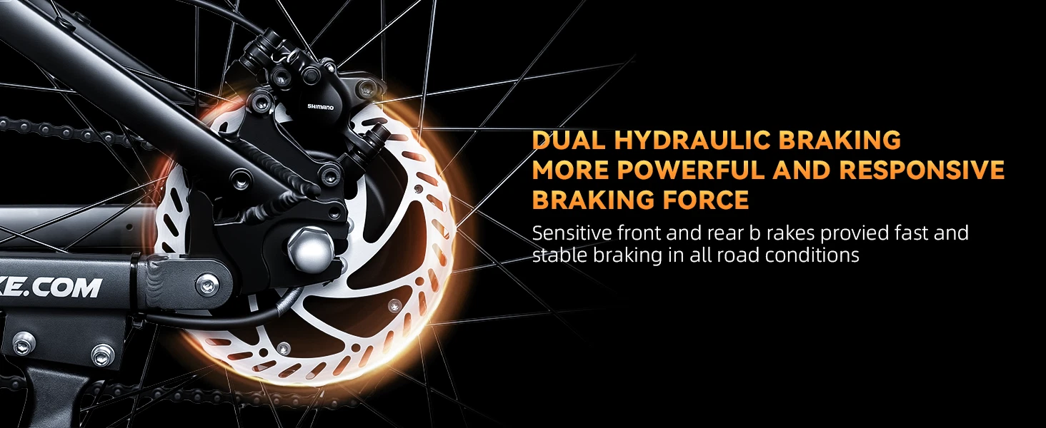 Safety and comfort are prioritized with full front and rear suspension, absorbing shocks to ensure a smooth ride, and hydraulic disc brakes for reliable stopping power even at high speeds. The 5W bright front light keeps you visible during low-light rides, and the adjustable seat accommodates riders of different heights—making it suitable for seniors too.