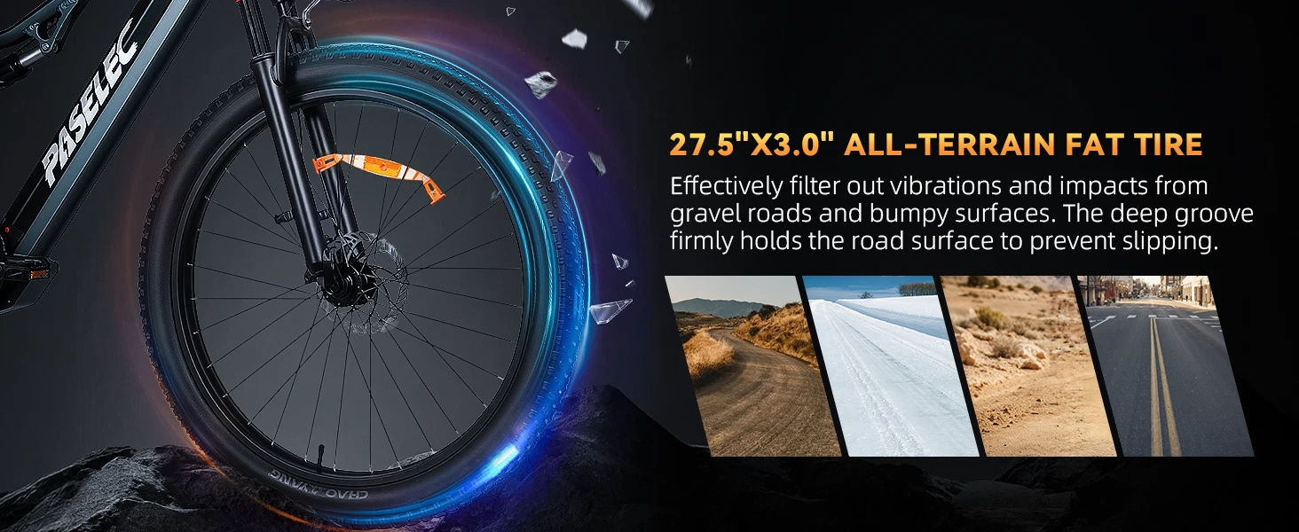 Introducing the 2025 PASELEC GS9PRO Electric Mountain Bike, a high-performance e-bike designed for unisex adults—perfect for both off-road adventures and daily commutes. Built with a durable aluminum alloy frame and 27.5-inch CST 27.5''x3.0'' tires, it delivers exceptional stability and traction on any terrain, from rugged mountain trails to city streets.