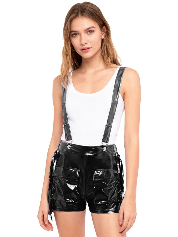 Set Include: 1Pc Women Metallic Suspender Shorts
