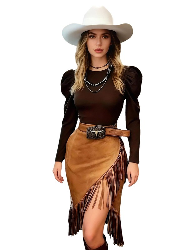 The vintage cowgirl tassel and fringe wrap hem design adds a trendy and retro western touch, making you stand out in the crowd with a unique and fashionable look.