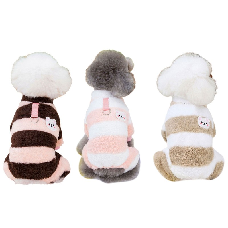 The striped design combined with bear details makes the jumpsuit look cute and trendy, adding a touch of charm to your furry friend.