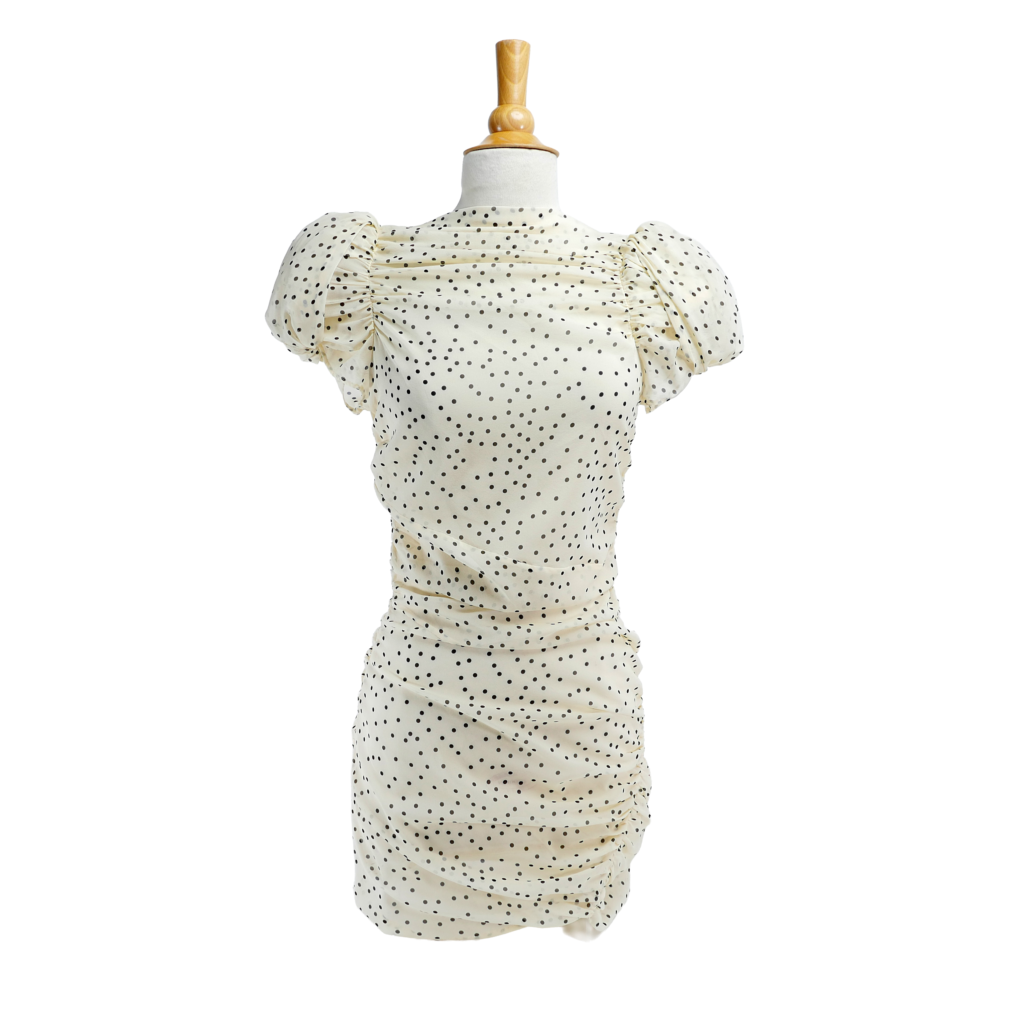 Style: Sheer, puff sleeve, back-zip, mini dress