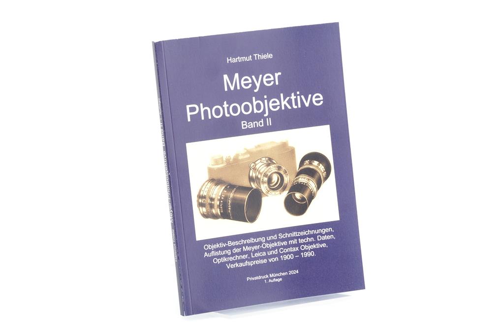Hartmut Thiele - Meyer photo lenses, private print Munich 2024, 1. Edition, 112 pages, German language, no ISBN, softcover.